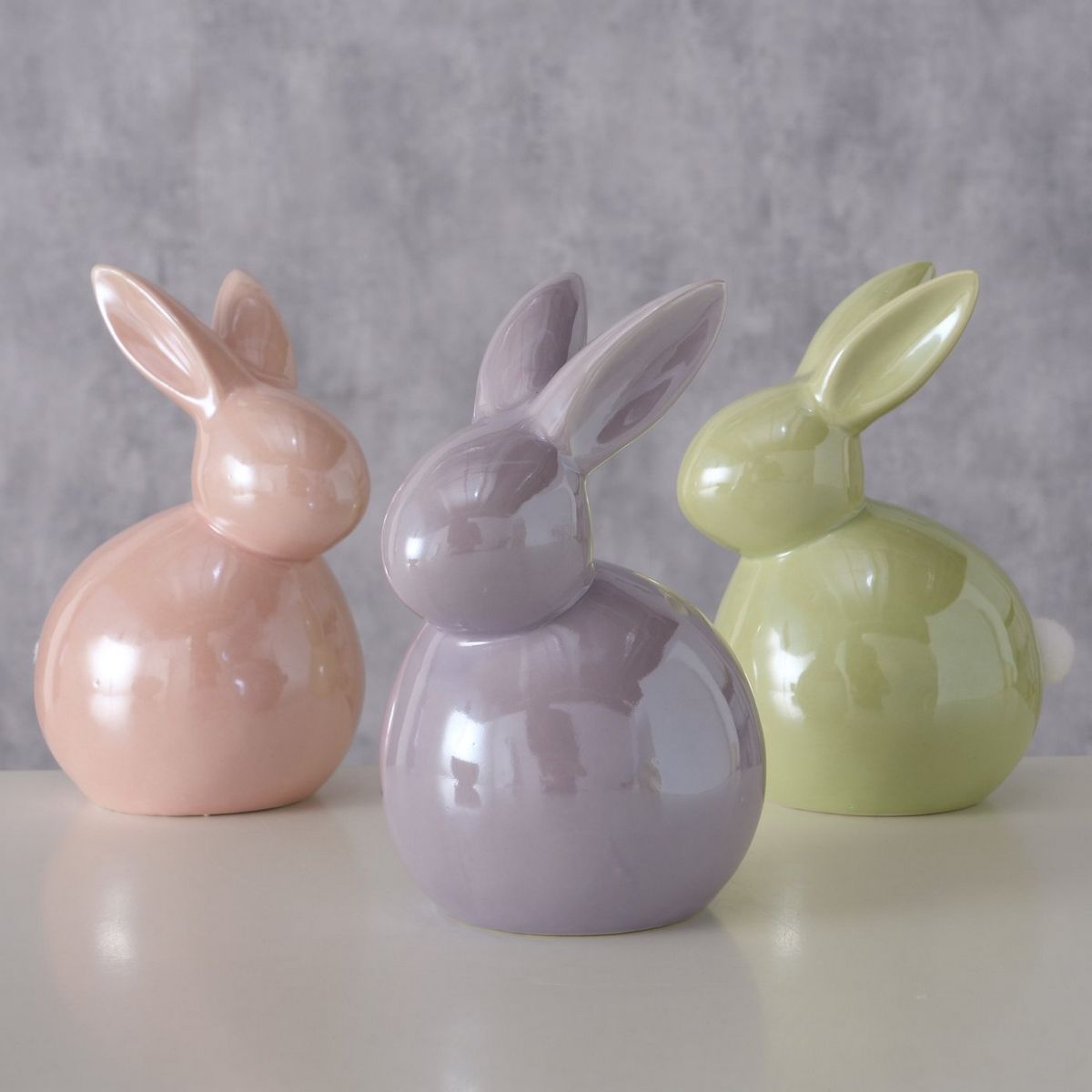 Figurine Bobsie, 3 ass., Rabbit, H 14,50 cm, Porcelain, Green, Light rose, Purple