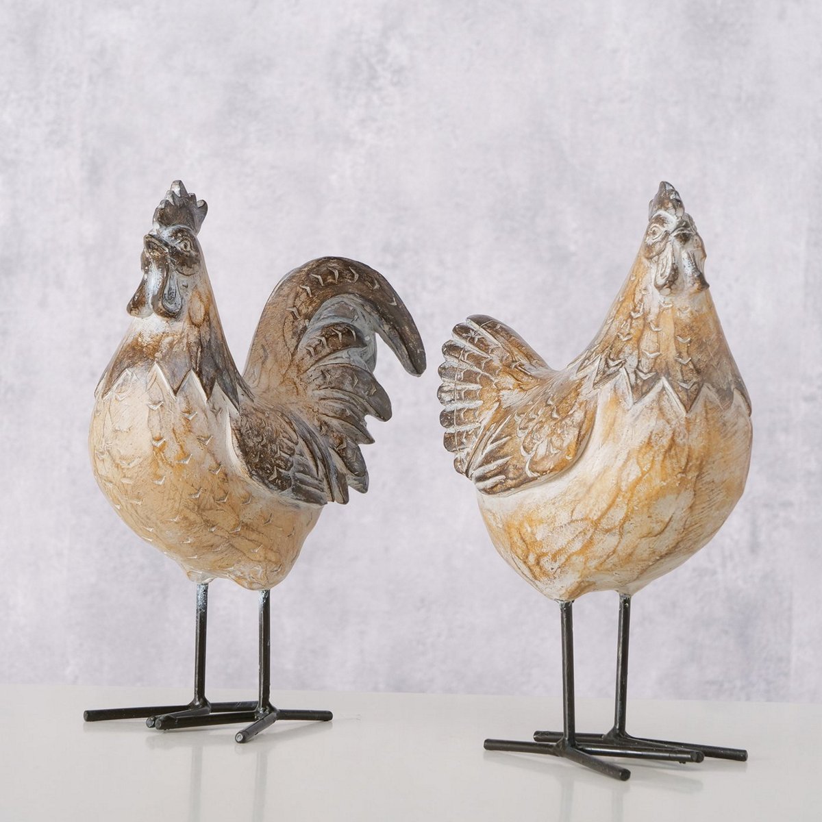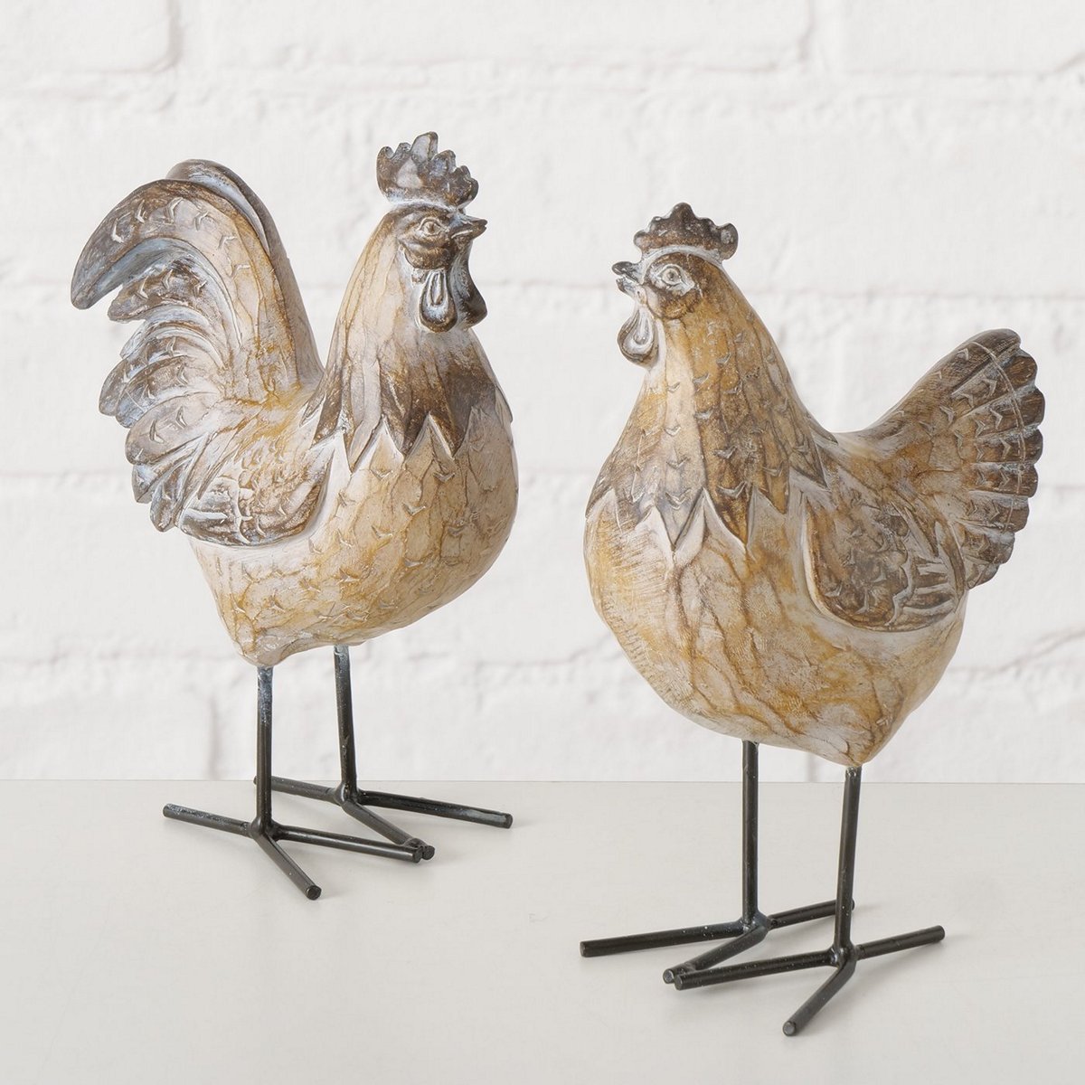 Figurine Cokito, 2 ass., Cock, Hen, H 18,8 cm, Iron powder coated, Polyresin, Brown mixed materials brown