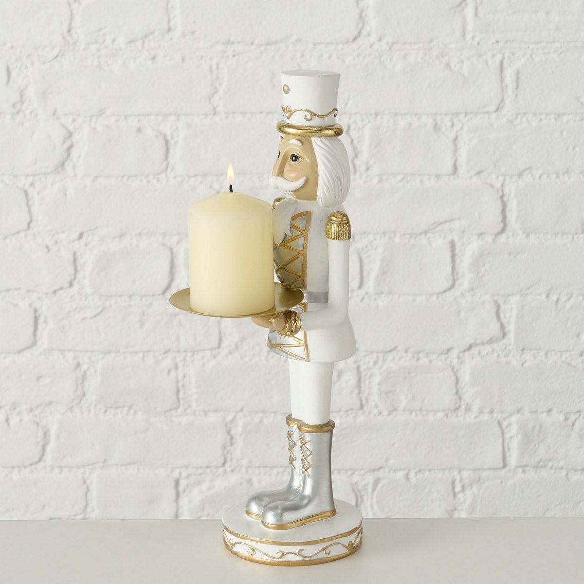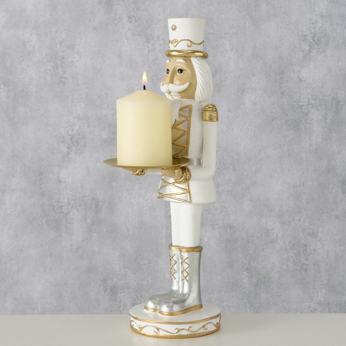 Figurine Cracky, Nutcracker, H 35,00 cm, Polyresin, Gold, Silver, White polyresin colour-mix