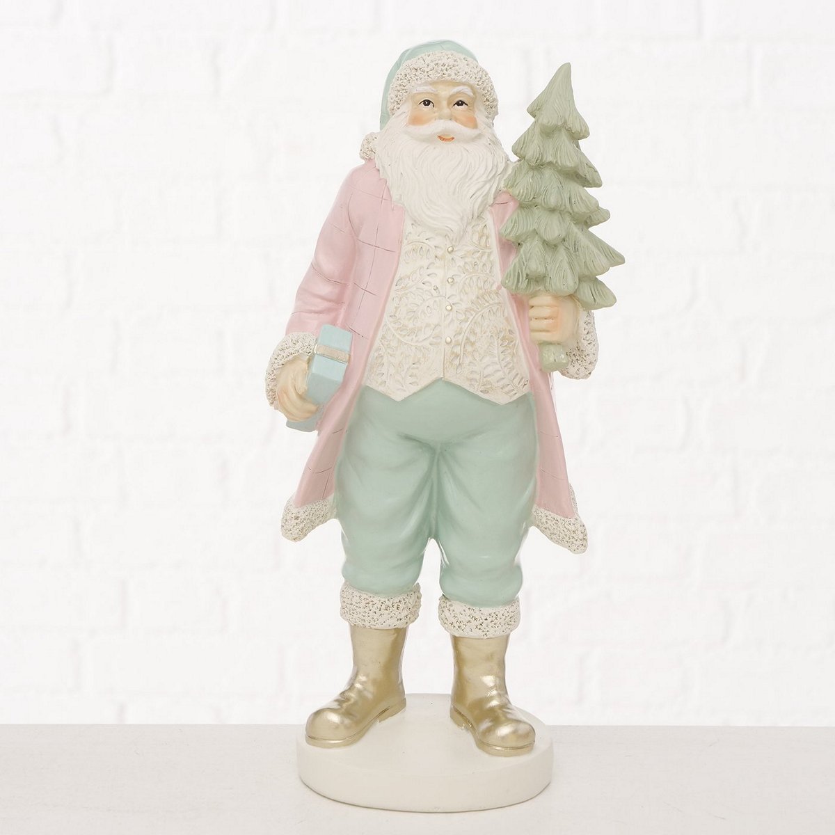 Figurine Ernesty, 2 ass., Santa, 14X10X33cm, Polyresin, Gold, Green, Light rose, White polyresin colour-mix