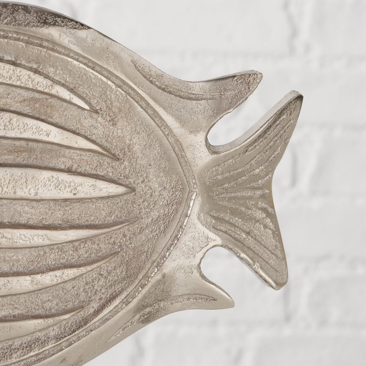 Figurine Fisky, Fish, H 23,50 cm, Mango (Mangifera indica L.), Aluminium, Natural, Silver