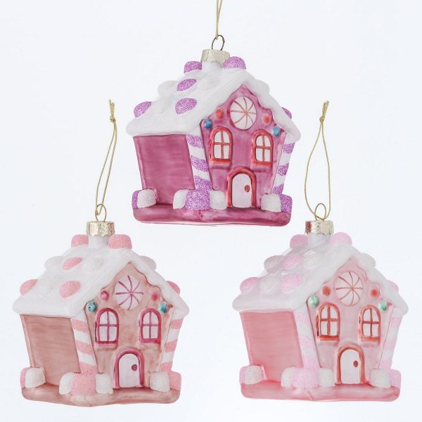 Christmas pendant Sugary, 3 ass., House, L 8,00 cm, H 9,00 cm, Glitter, Mat, Shiny glass laquered colour-mix