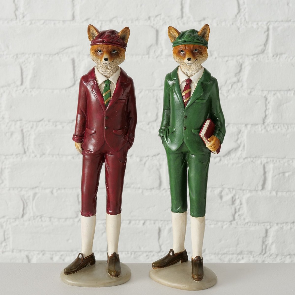 Figurine Foxa, 2 ass., Fox, 9X7X32cm, Polyresin, Green, Red, Red-brown, White polyresin colour-mix