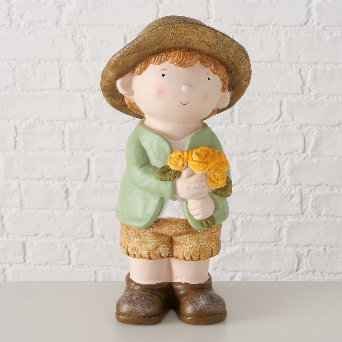 Figurine Franklin, Boy, H 39,50 cm, Magnesia, Brown, Green