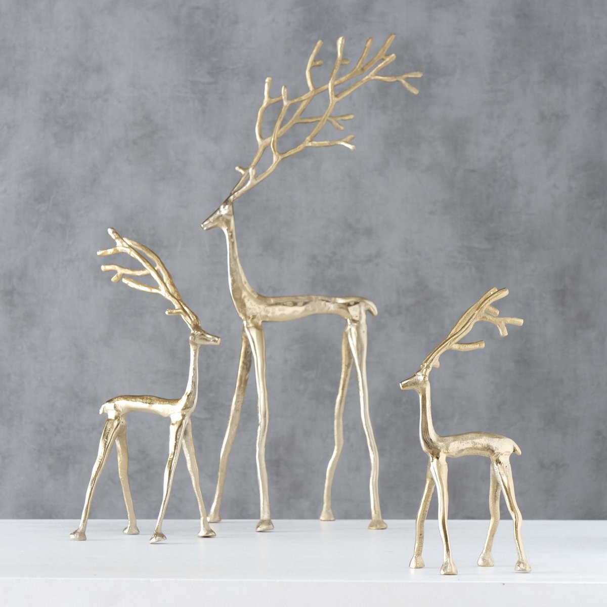 Figurine Frody, 3 p., Set 3, Deer, H 29-67 cm, Aluminium, Gold aluminium gold