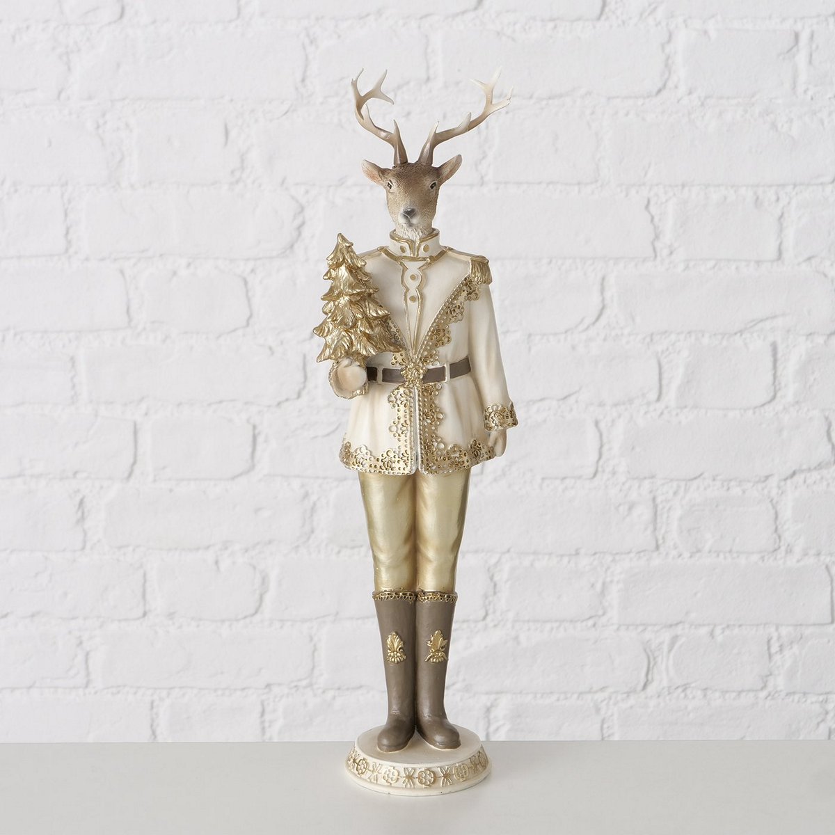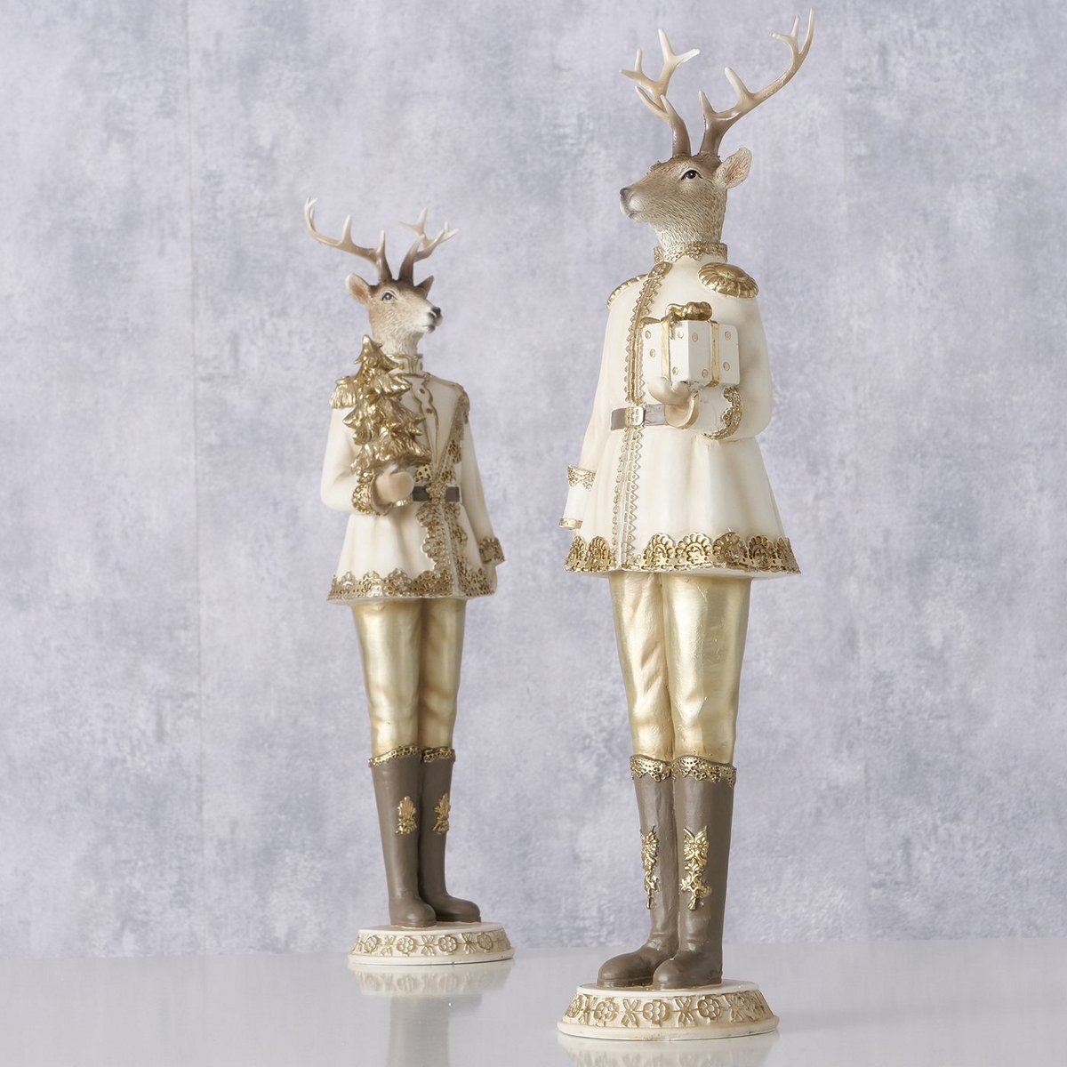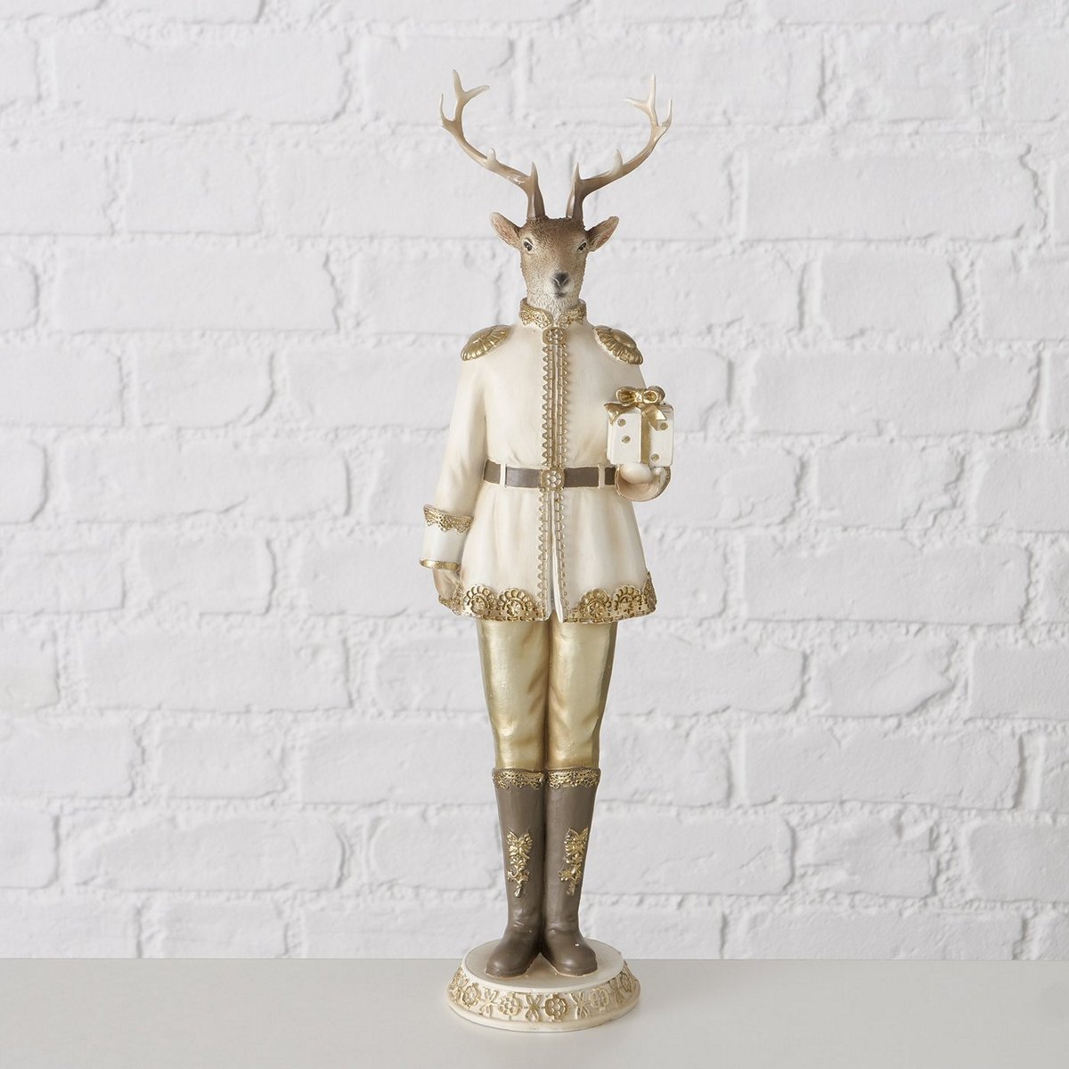 Figurine Jordy, 2 ass., Deer, H 41 cm, Polyresin, Cream white, Gold polyresin colour-mix