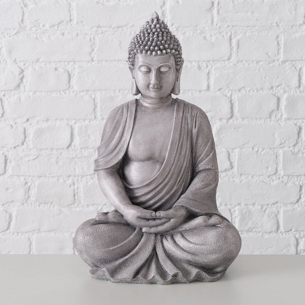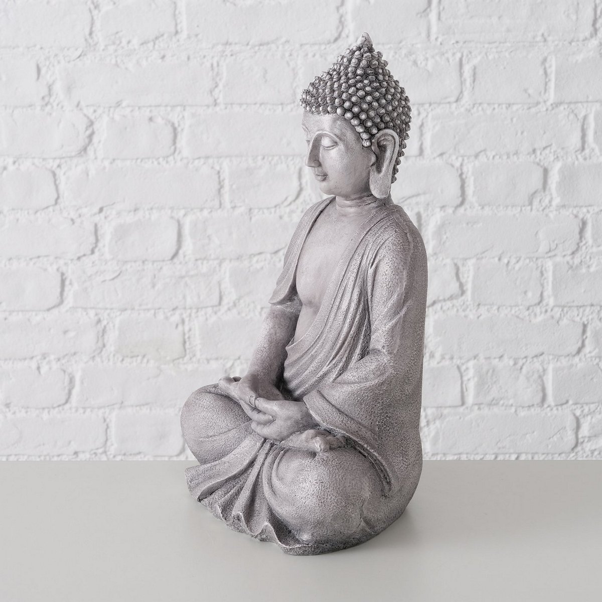 Figurine Karuso , Buddha, H 39 cm, Polyresin, Grey polyresin grey