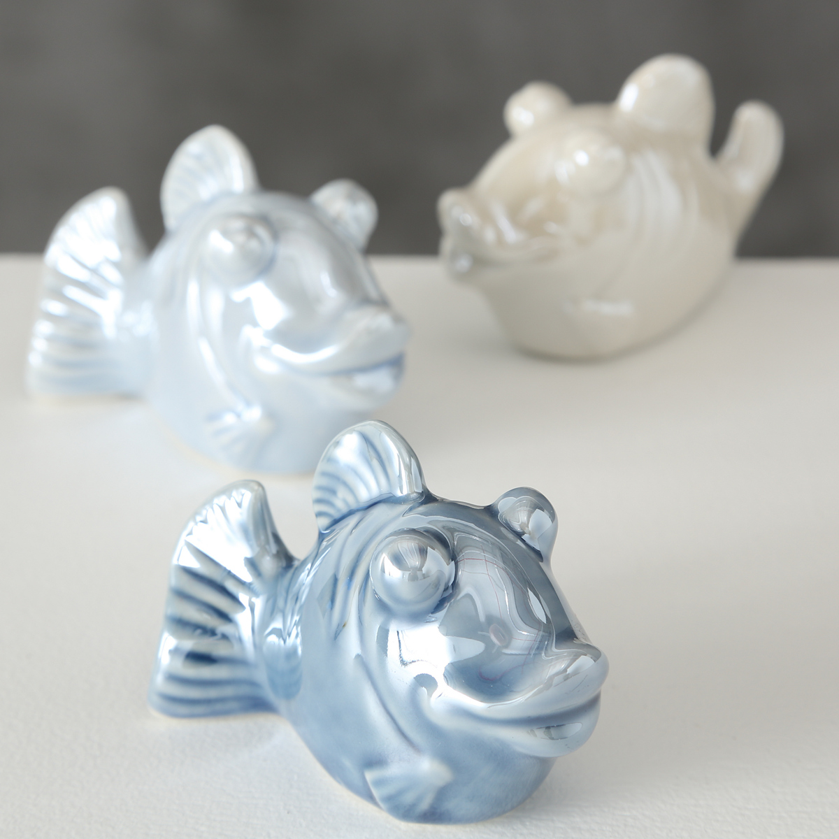 Figurine Malvo, 3 ass., Fish, H 5,00 cm, Porcelain, Light blue, Aqua blue, Beige porcelain colour-mix