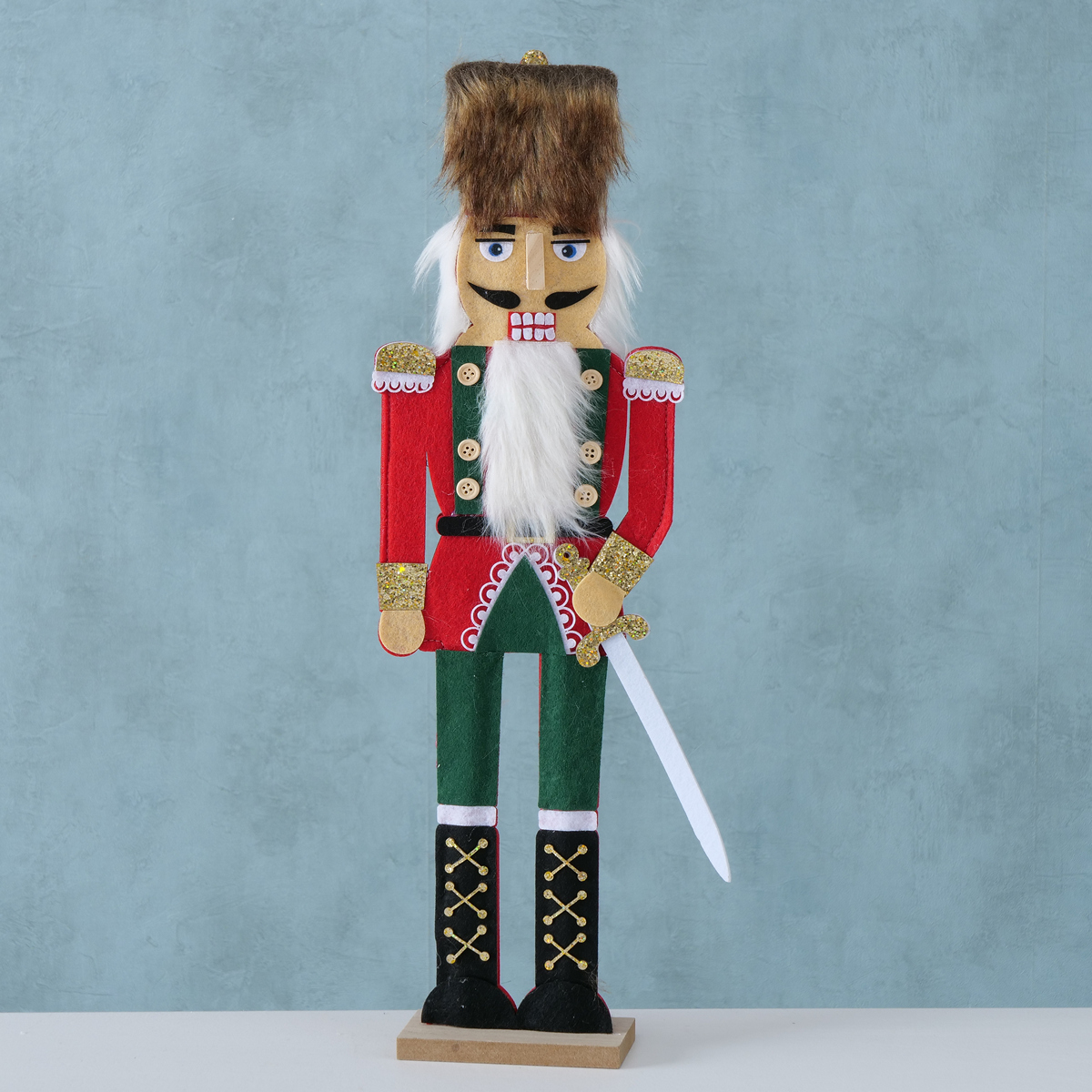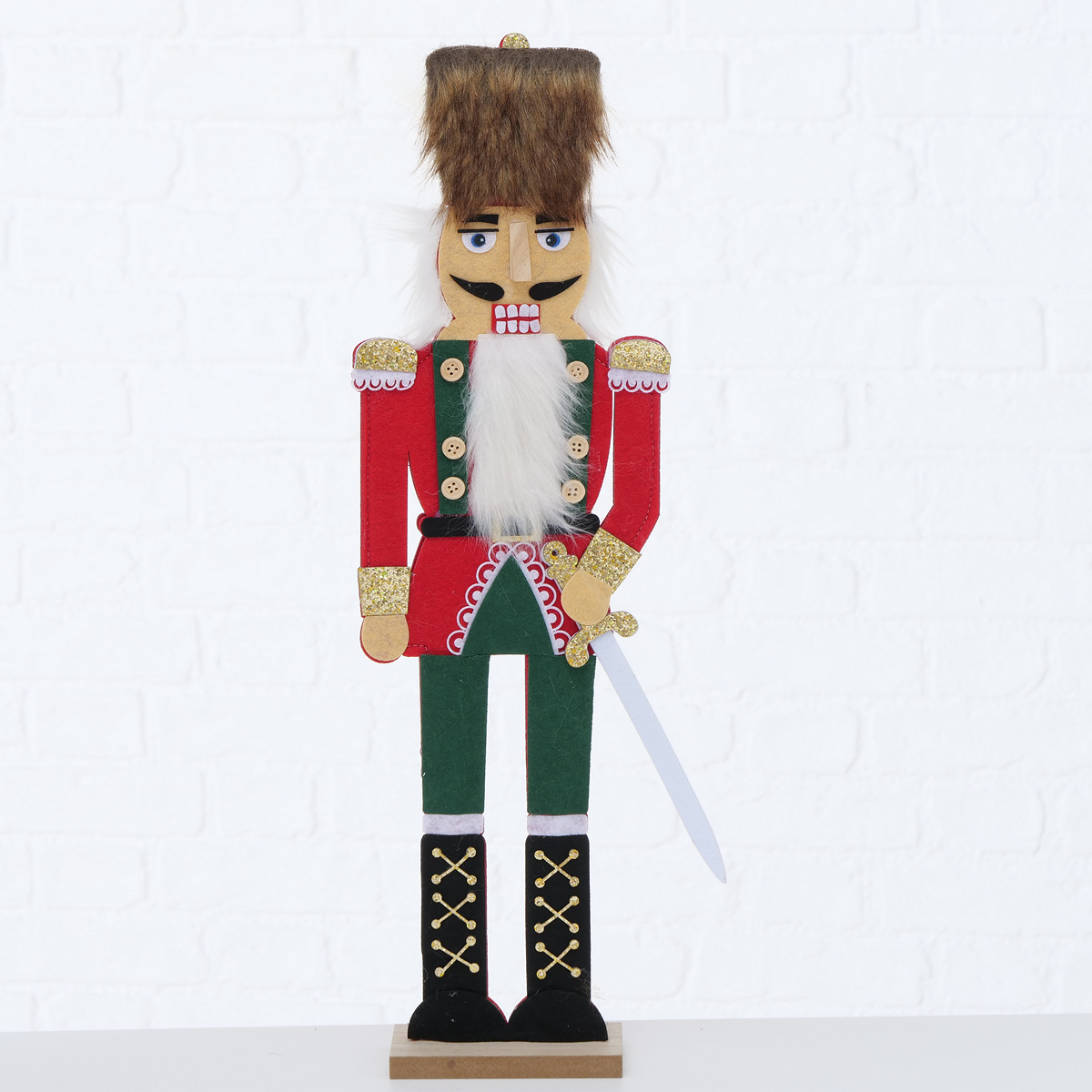 Figurine Reydar, Nutcracker, H 54,00 cm, MDF, Polyester-felt, Brown, Green, Red, White mixed materials colour-mix