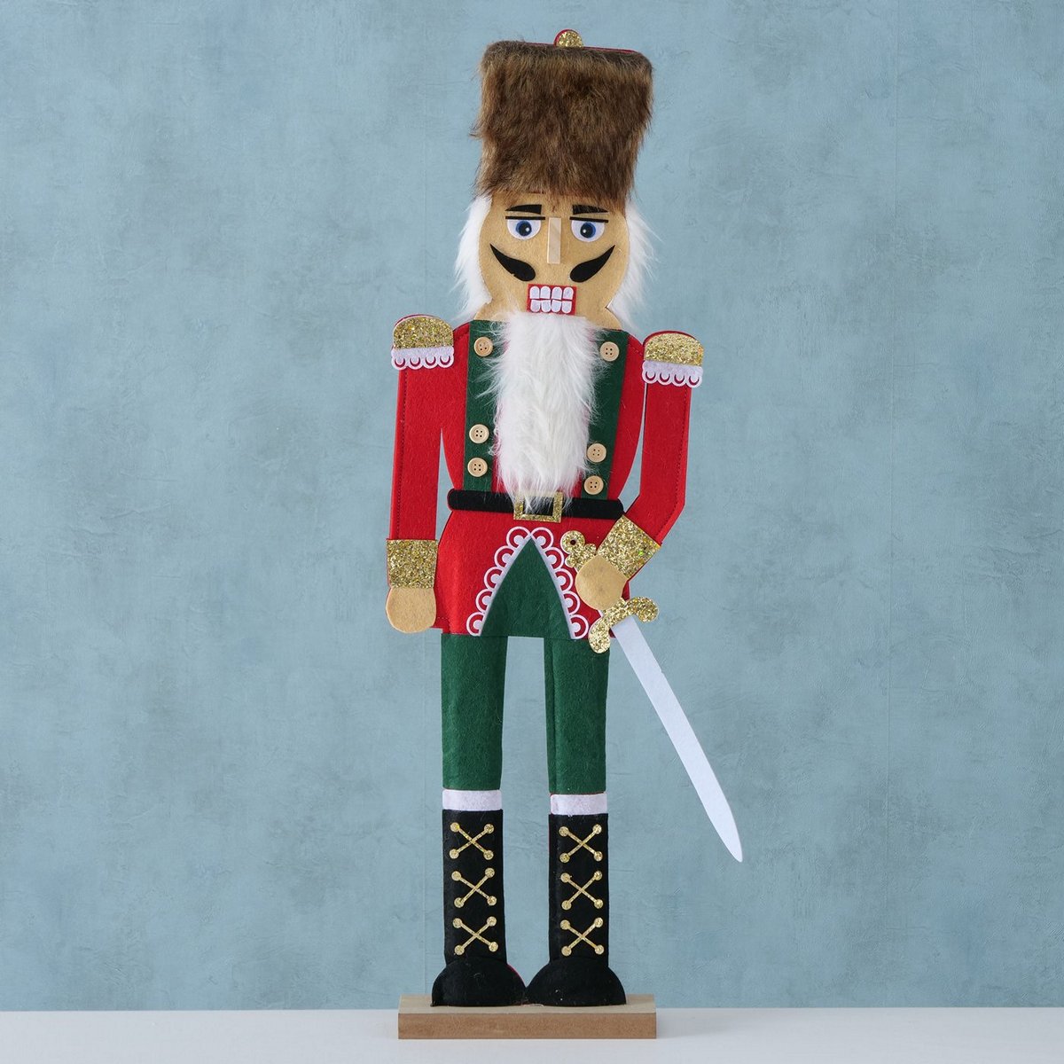 Figurine Reydar, Nutcracker, H 77,00 cm, MDF, Polyester satin, Brown, Green, Red, White mixed materials colour-mix