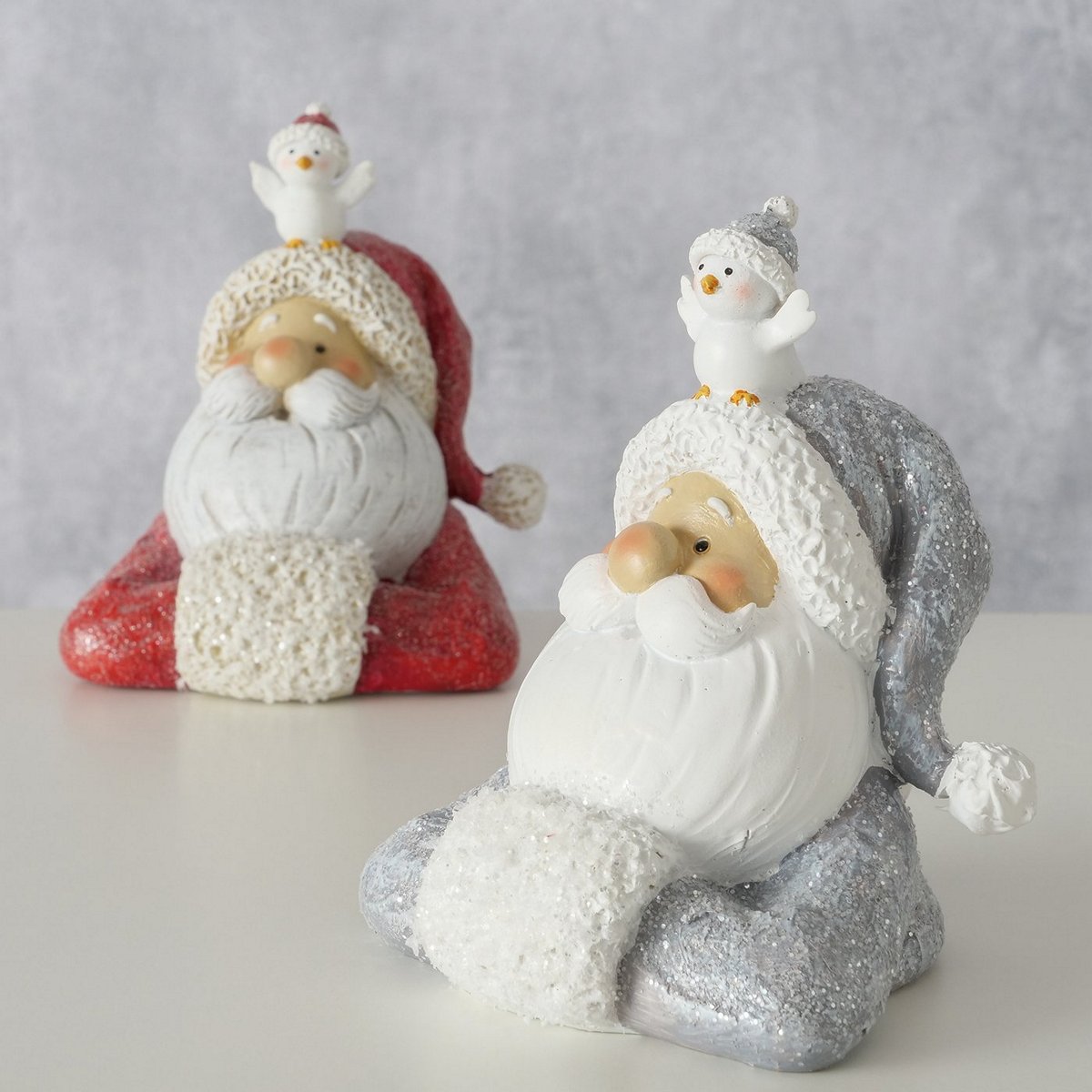 Figurine Santo, 2 ass., Santa, 9Χ8Χ12 cm, Polyresin, Grey, Red, White polyresin colour-mix