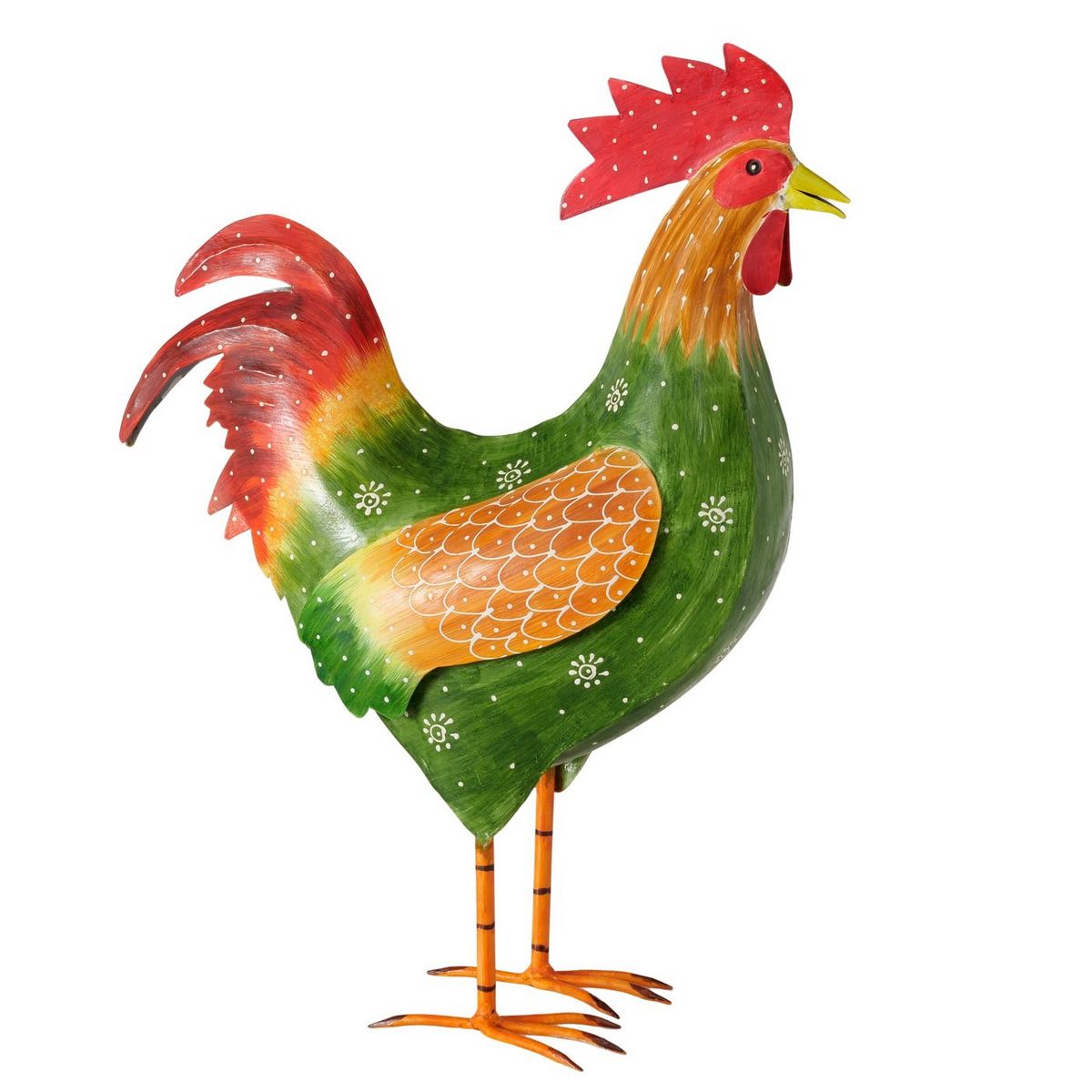 Figurine Stevy, Cock, H 52,00 cm, Iron, Brown, Green, Orange