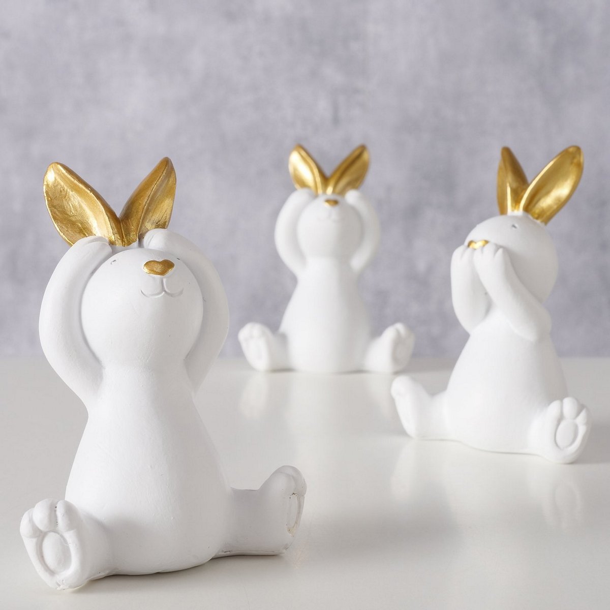Figurine Stupsi, 3 ass., Rabbit, H 10,3 cm, Polyresin, Gold, White polyresin colour-mix