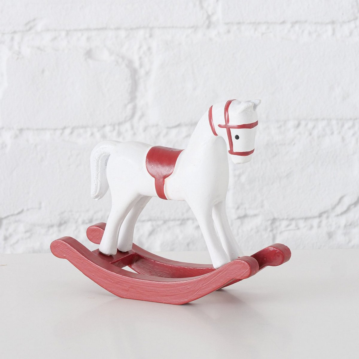 Figurine Thassilo, Rocking Horse, H 11,00 cm, MDF, Red, White MDF colour-mix