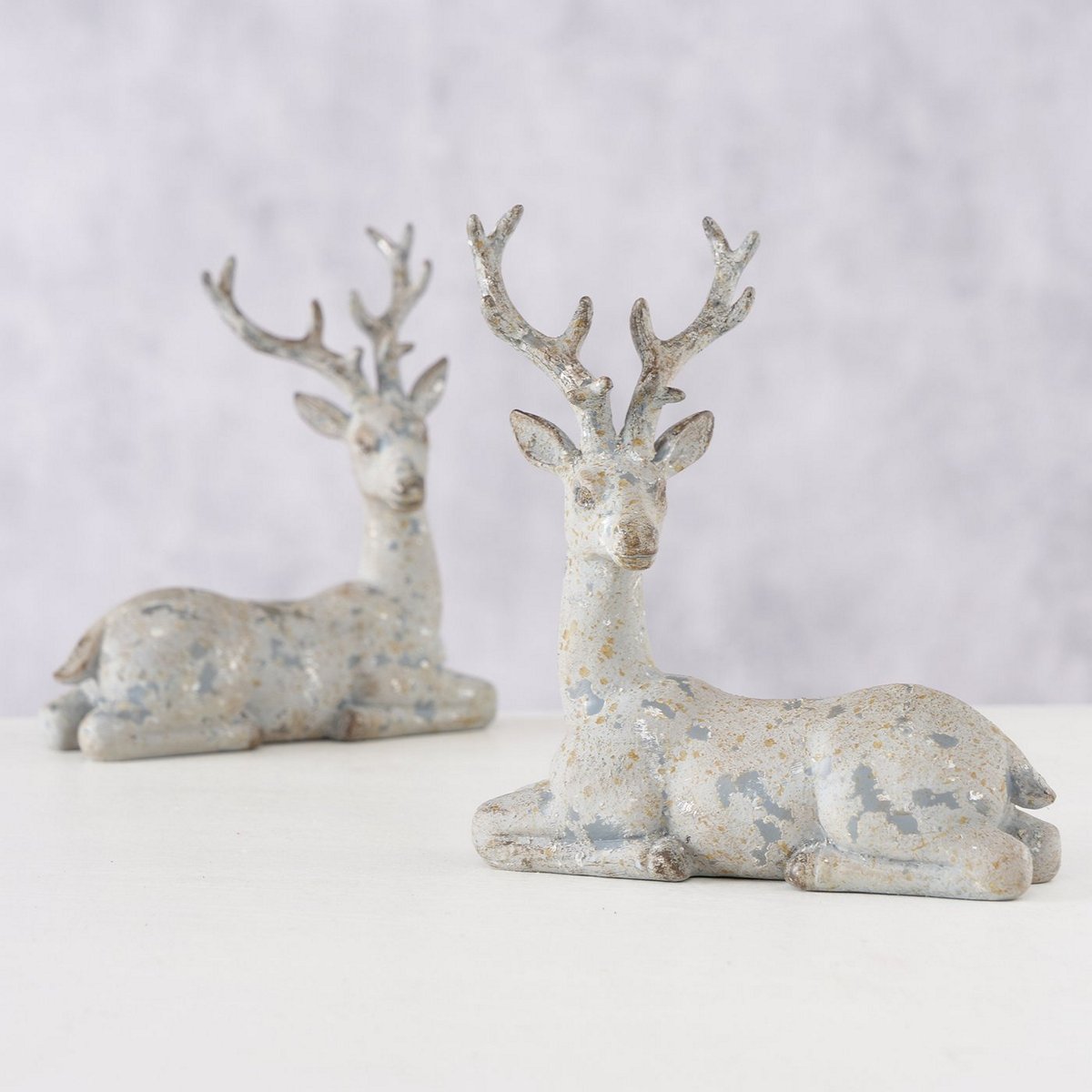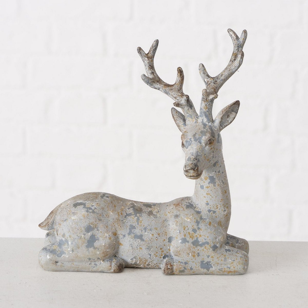 Figurine Travis, 2 ass., Deer,14X8X16cm, Polyresin, Grey, Silver polyresin colour-mix