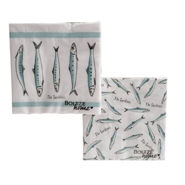 Napkins Sardine, 2 ass., Paper, Motif, Multi-coloured, Saying/Text, Square, Fish, Word
