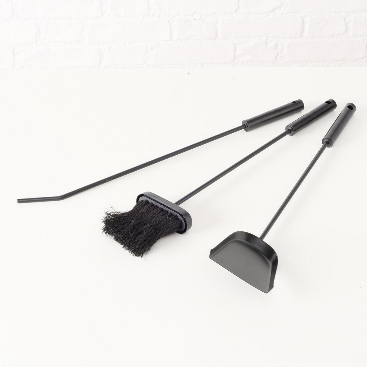 Fire place tools Mika, 4 p., H 63,5 cm, Iron powder coated, Aluminium, Black mixed materials black
