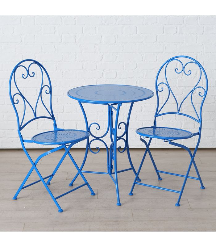 Furniture set Teresa, 3 p., Set 2, Table / 1, Chairs / 2, H 70-93 cm, Iron powder coated, Single-colour, Motif iron powd