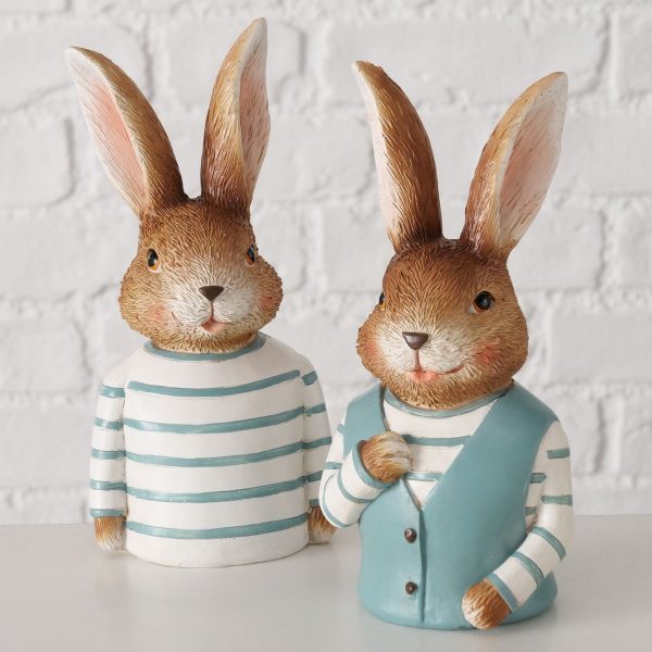 Figurine Jonas, 2 ass., Rabbit, H 21,00 cm, Polyresin, Blue, Brown