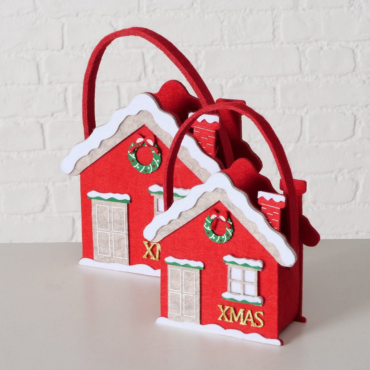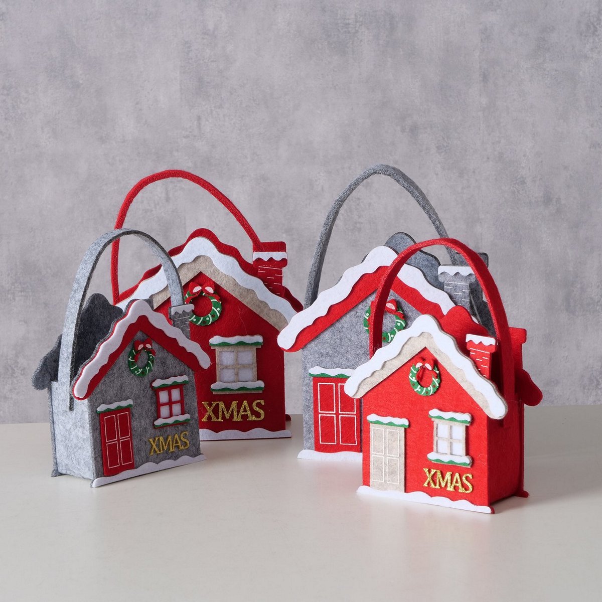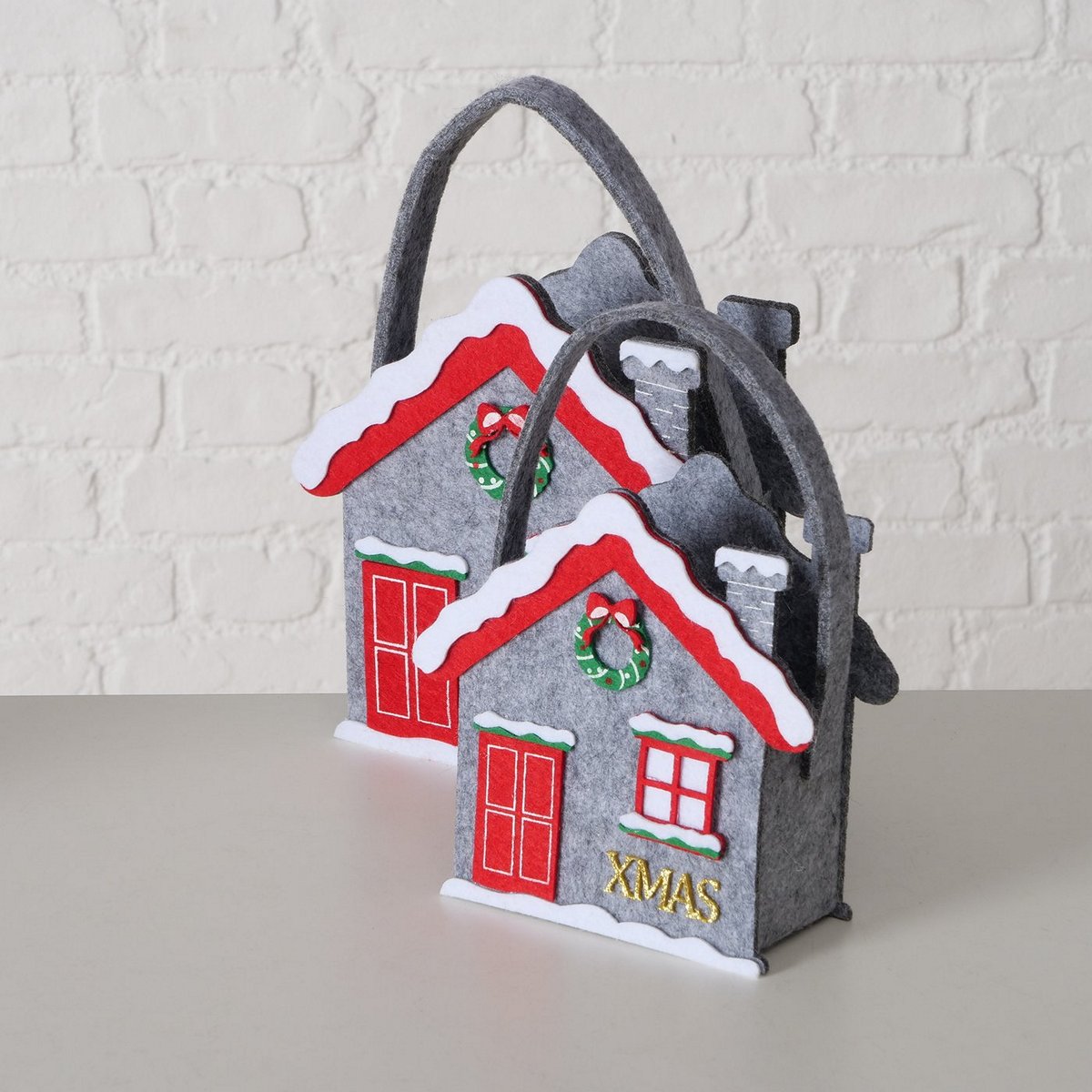 Gift bag Sion, 2 p., 2 ass., Set 2, H 19-23 cm, Single-colour, No, Grey, Red Polyester- felt colour-mix