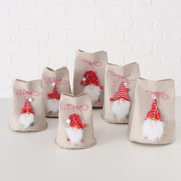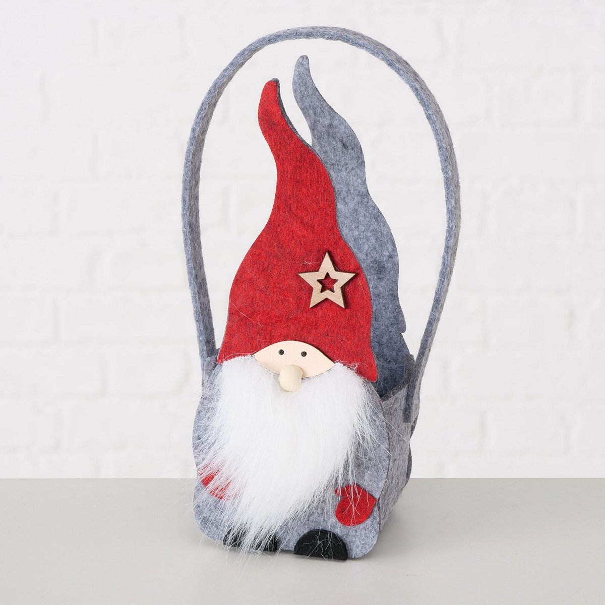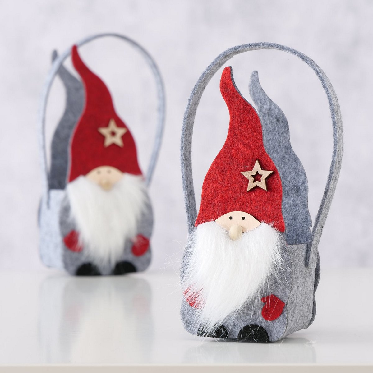 Gift bag Thilo, 2 p., Set 2, H 22,00-26,00 cm, Mat, Grey, Red, Plywood, Polyester-felt mixed materials colour-mix