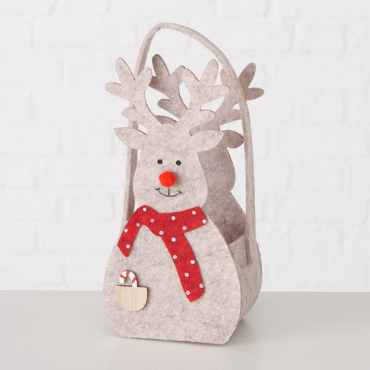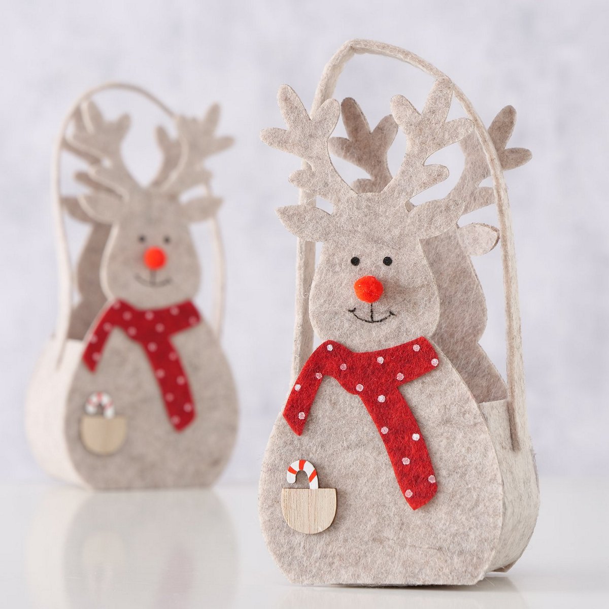 Gift bag Tilmo, 2 p., Set 2, H 23,00-26,00 cm, Multi-coloured, Glitter, Mat, Beige, Red Polyester- felt colour-mix