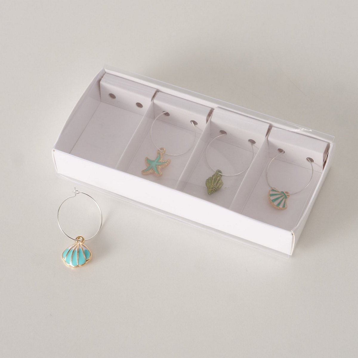 Glass markers Yuva, 4 p., H 2,1 cm, Iron, Zinc, Single-colour, Light turquoise mixed materials light turquoise