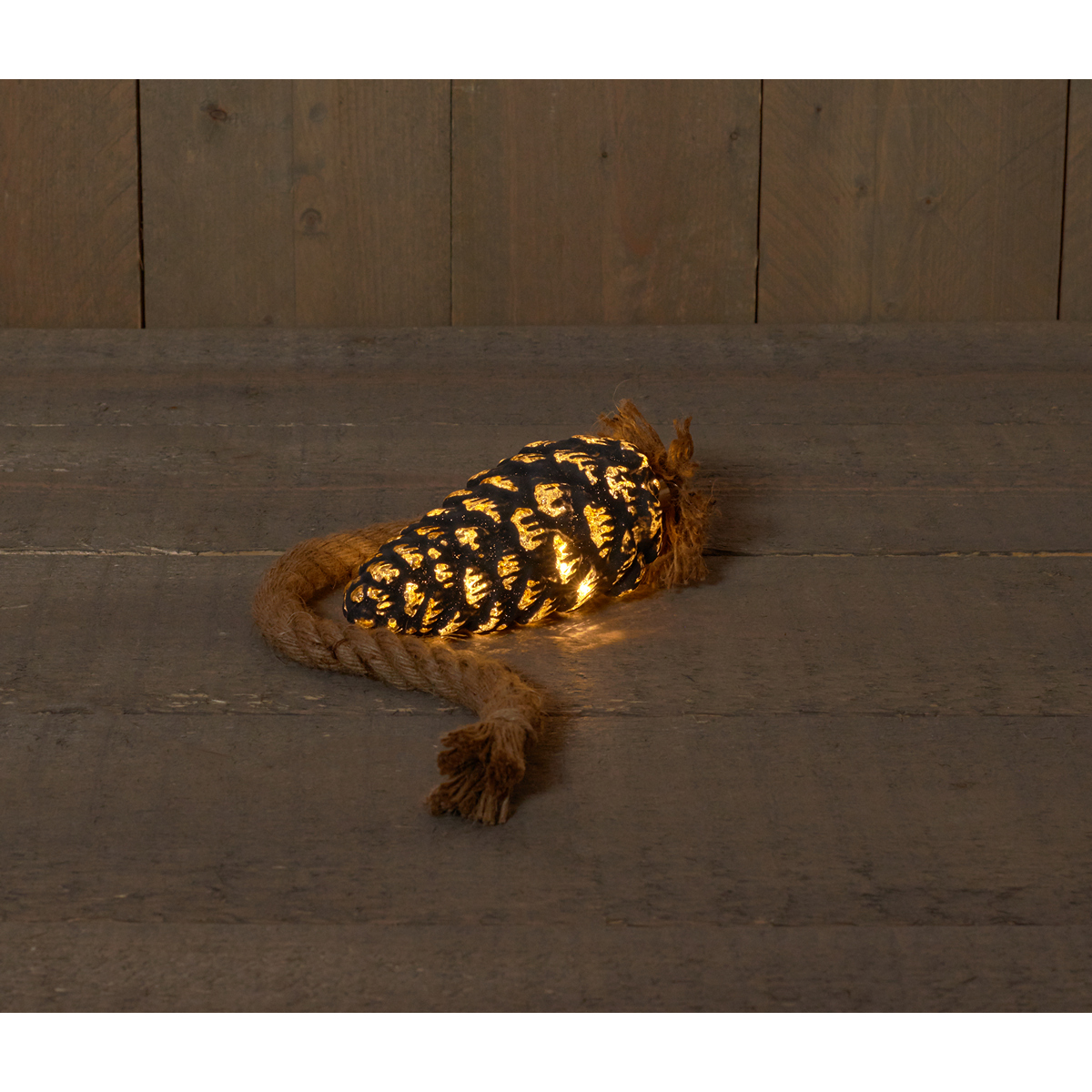 GLASS PINECONE BLACK/GOLD 10 LED B,O, (17CM)[60CM ROPE] {20CM LEADCABLE}[2XAA]