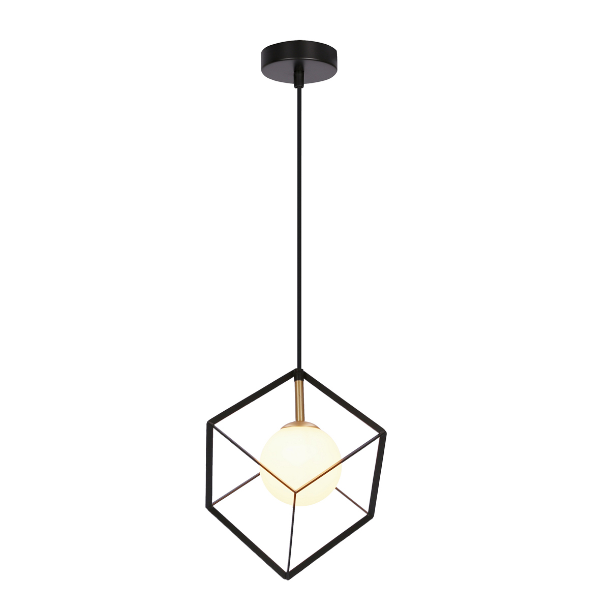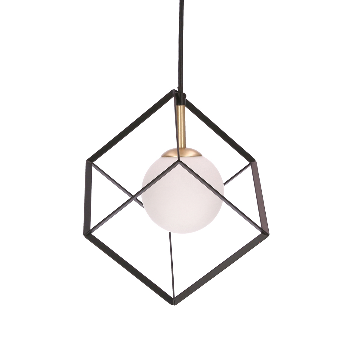 Hanging lamp cube 1x28W G9 15x15cm black, gold metal frame