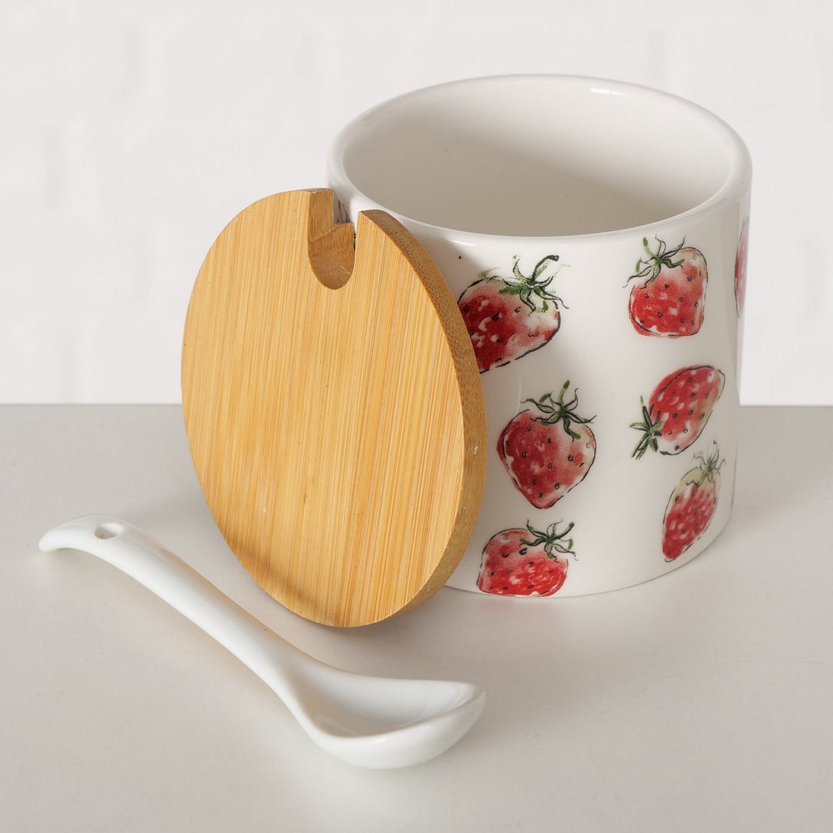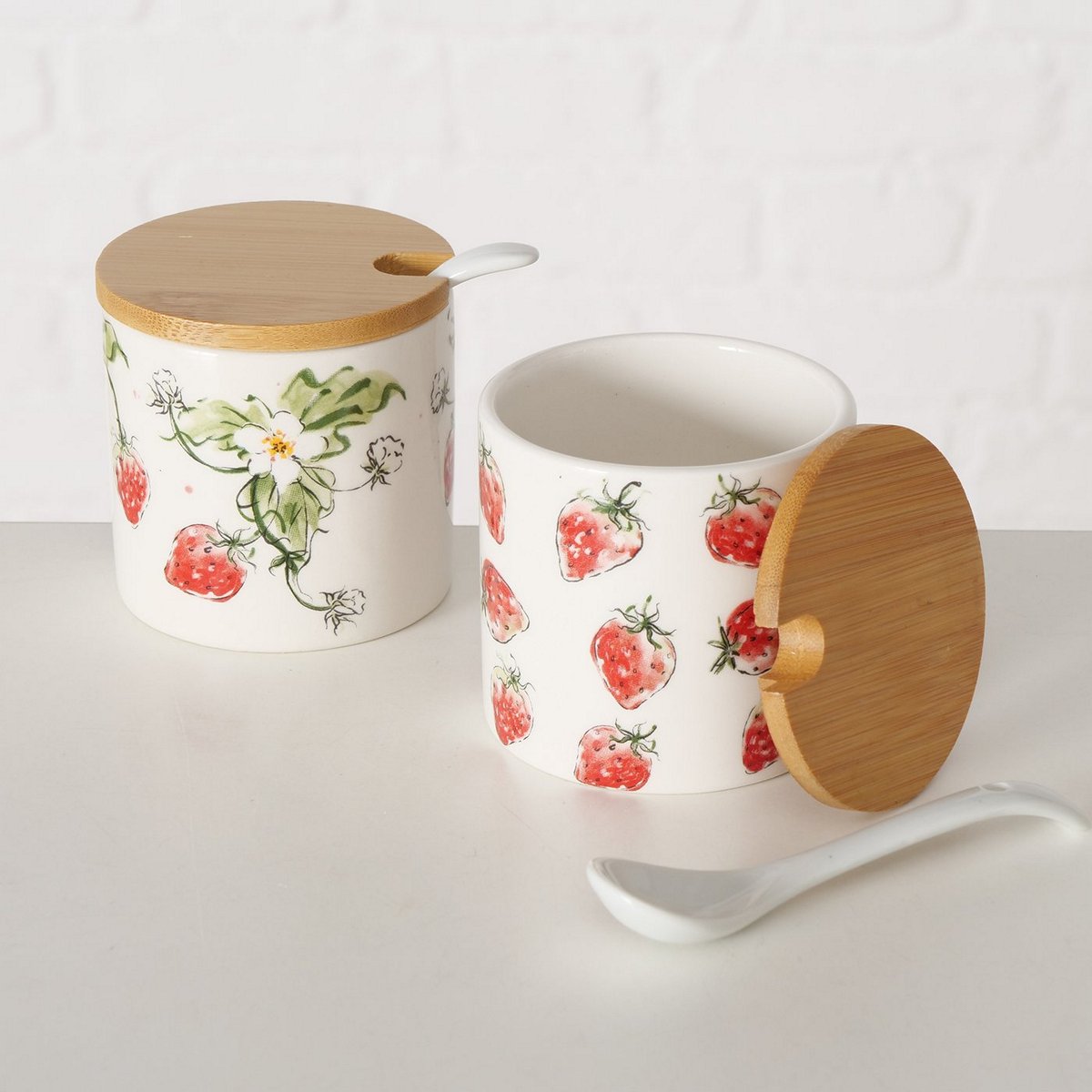Jam pot Strawberry, 2 ass., H 8 cm, D 7,5 cm, Bamboo (Phyllostachys edulis), Dolomite, Multi-coloured, Motif, All-round