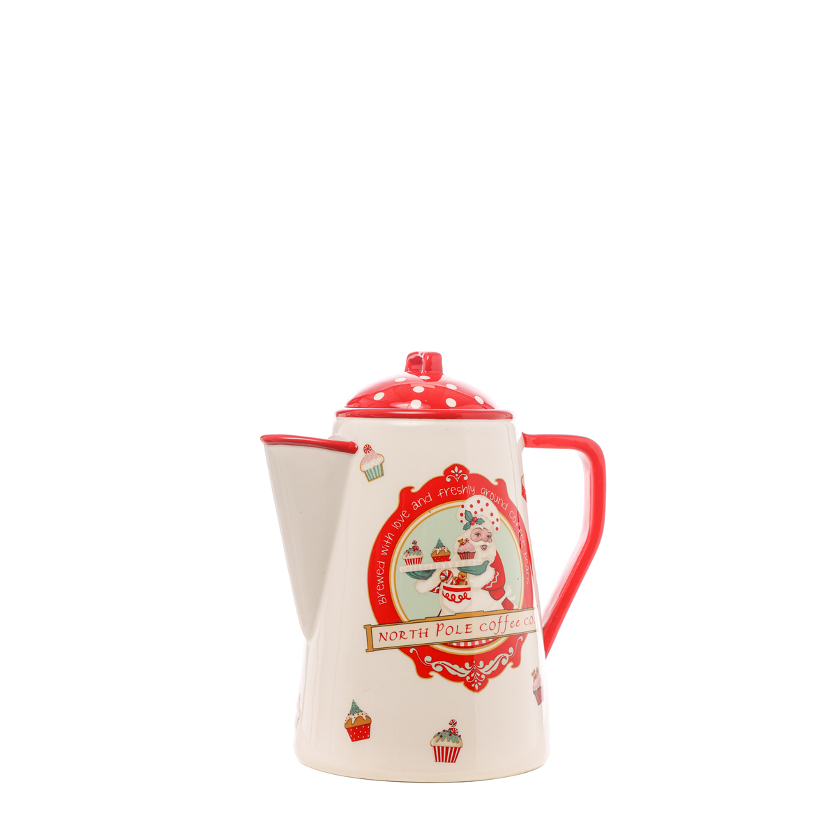 JUG WITH LID CERAMIC NORTH POLE RED/CHAMPAIGNE CM.19×13,5×22,5