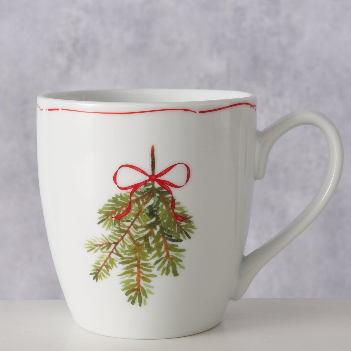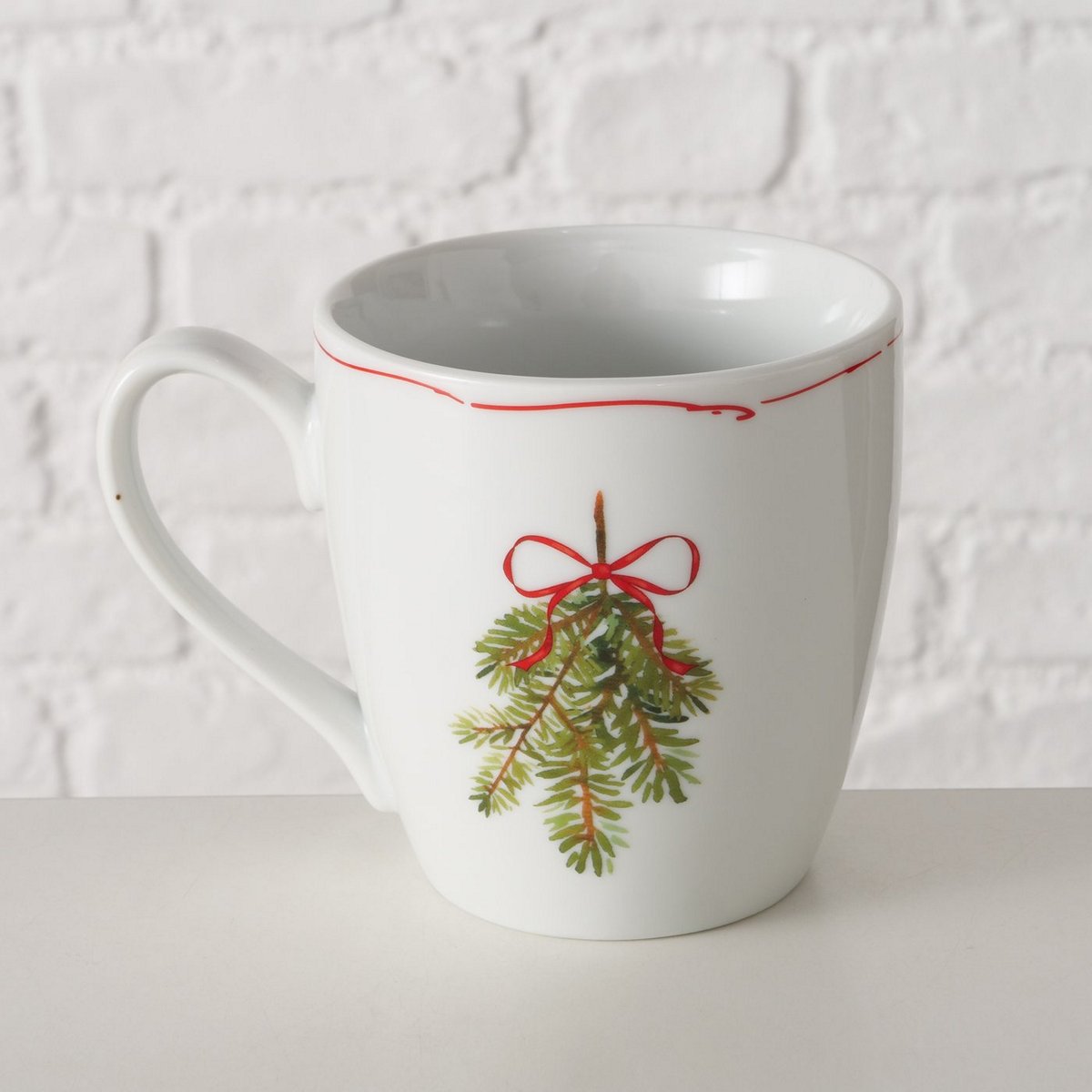 Jumbo mug Noelle, 480 ml, Dishwasher proof, Single-colour, Coloured edge, Motif, Green, White porcelain colour-mix