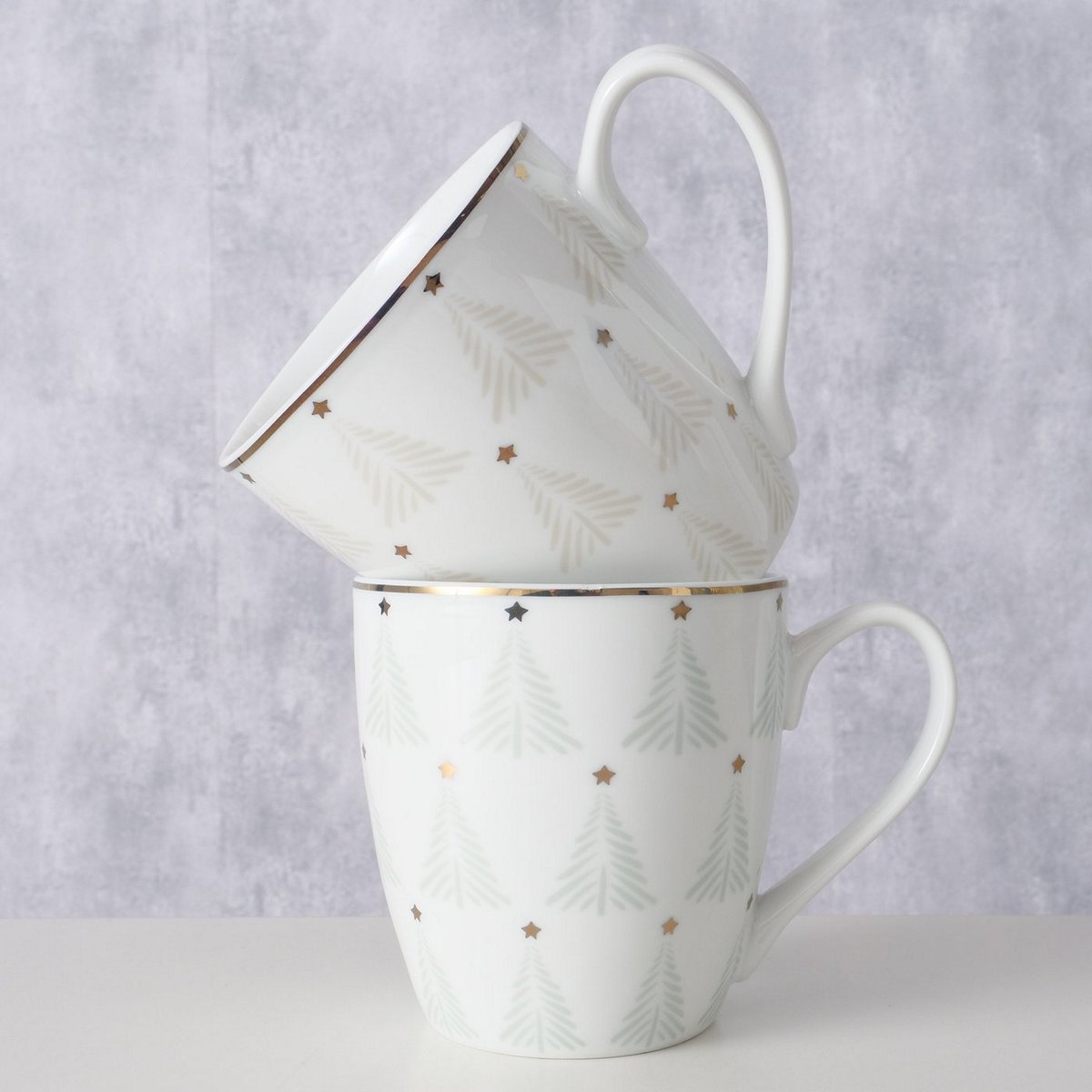 Jumbo mug Scarlett, 2 ass., 480 ml, Multi-coloured, Motif, All-round printing, Coloured edge, Beige, Light green, White,