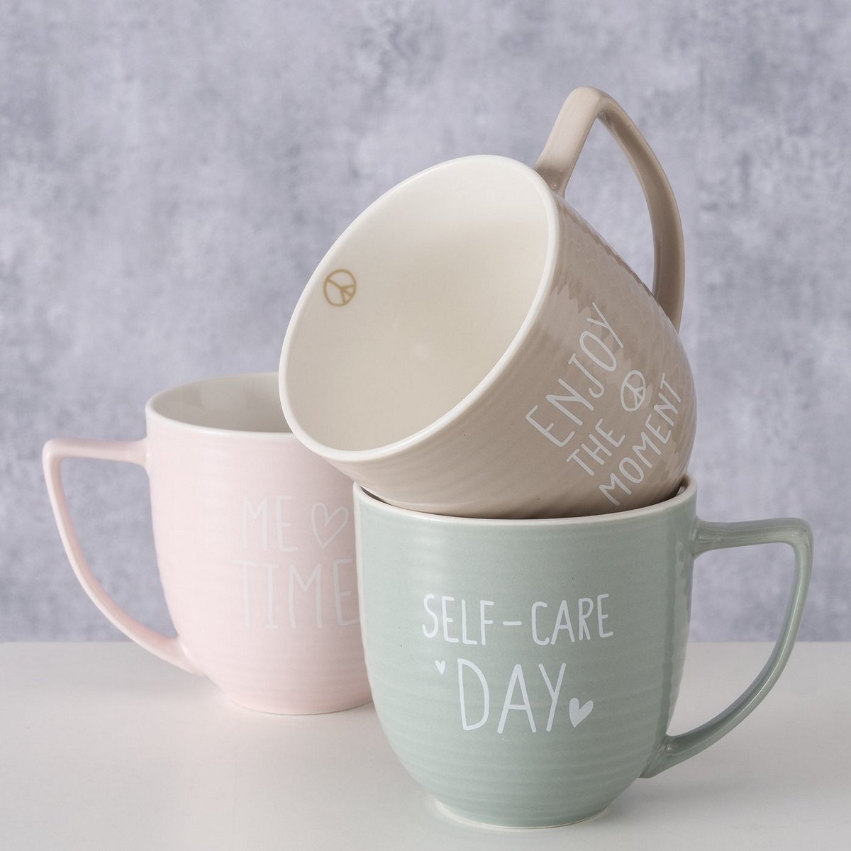 Jumbo mug Selfie, 3 ass., 400 ml, Dishwasher proof, Multi-coloured, Saying/Text, Beige, Green, Light rose New Bone colou