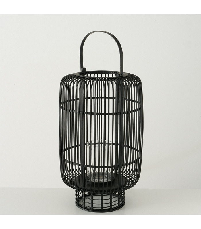 Lantern Bulga, Round, Indoor, H 63,00 cm, W 38,00 cm bamboo black