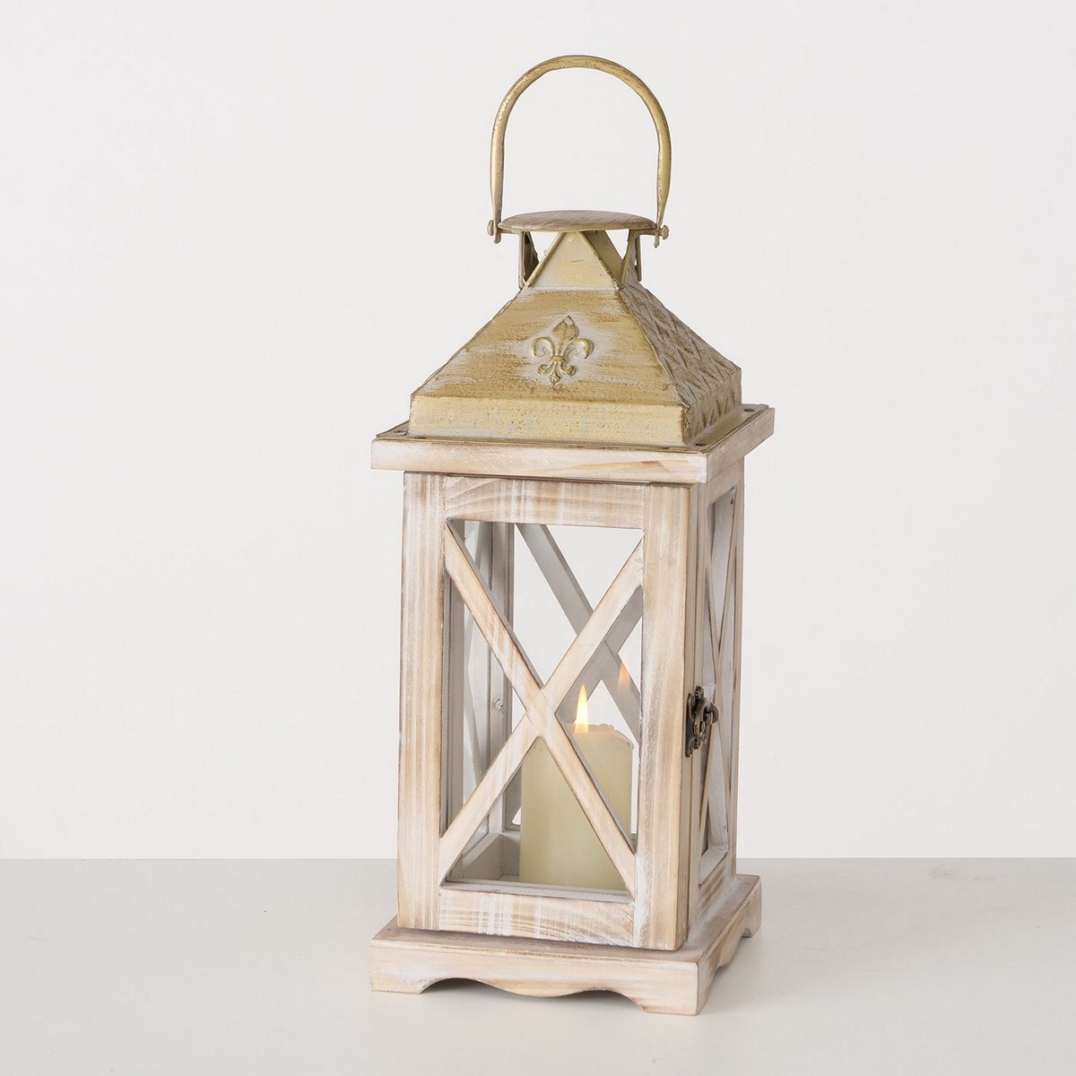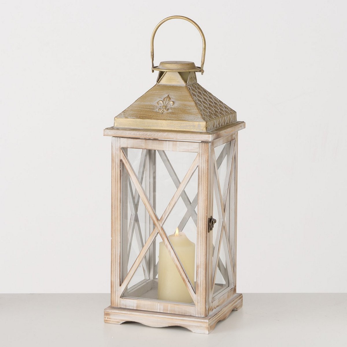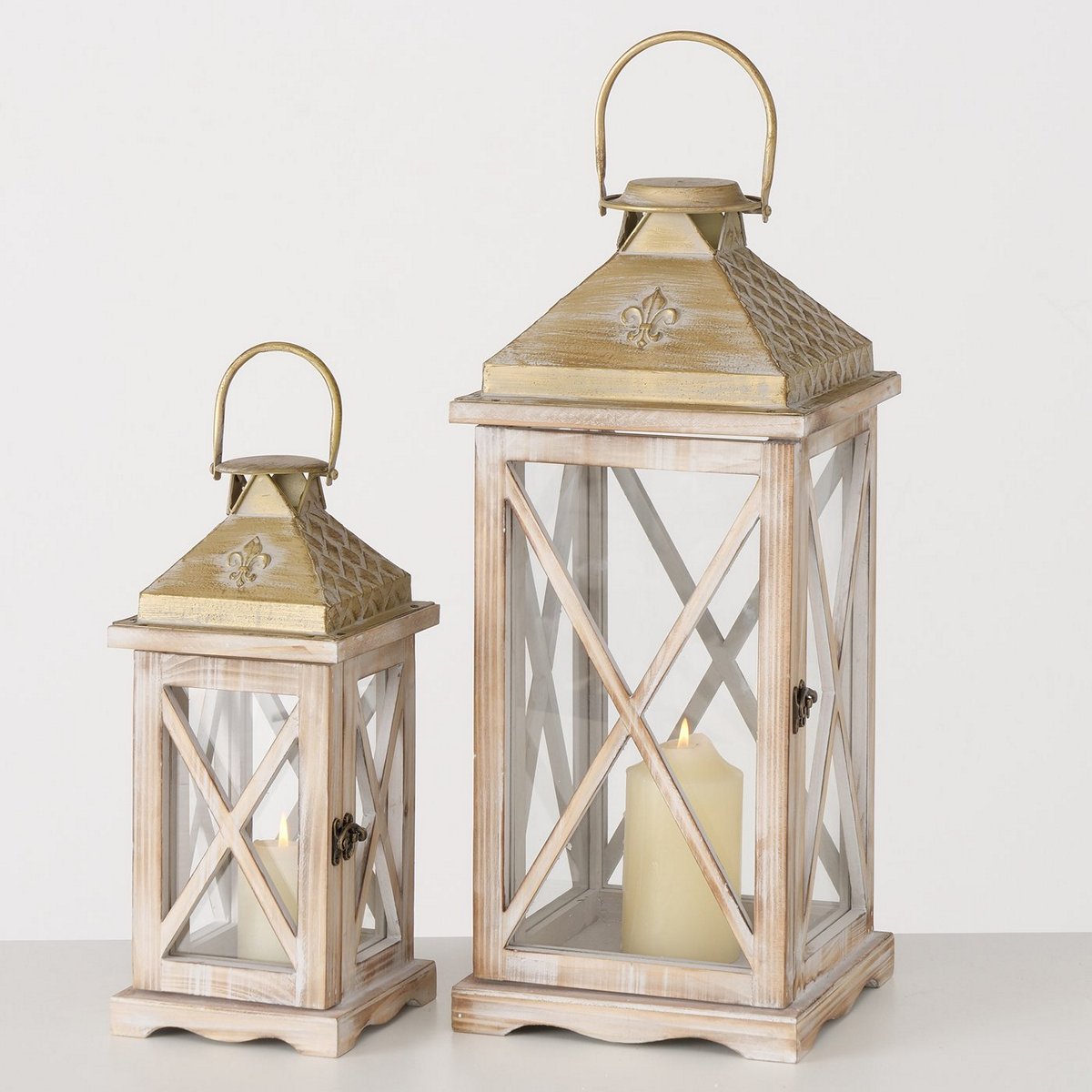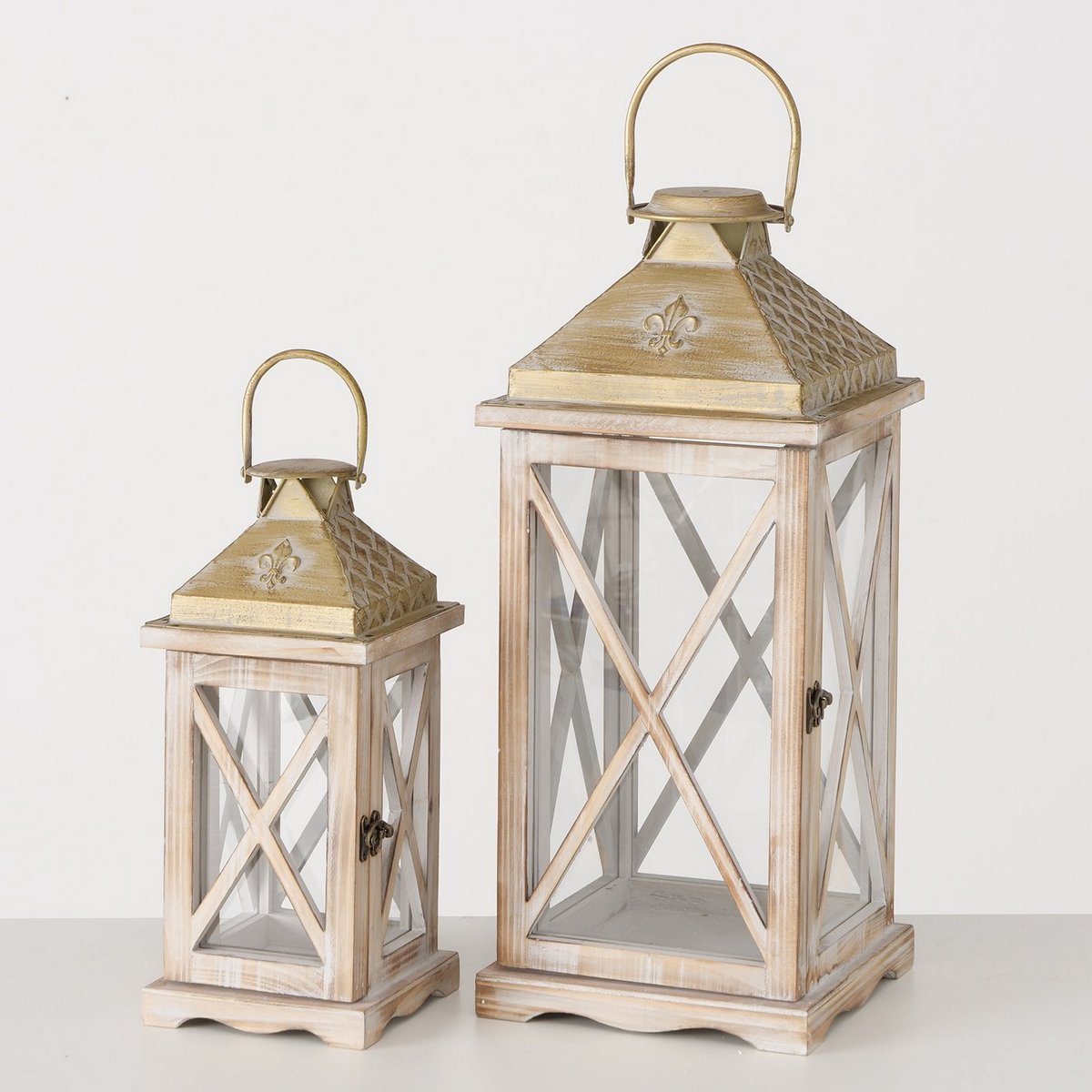 Lantern Cuneo, 2 p., Set 2, Square, Indoor, H 35,00-50,00 cm, W 15,00-21,00 cm cedar wood colour-mix