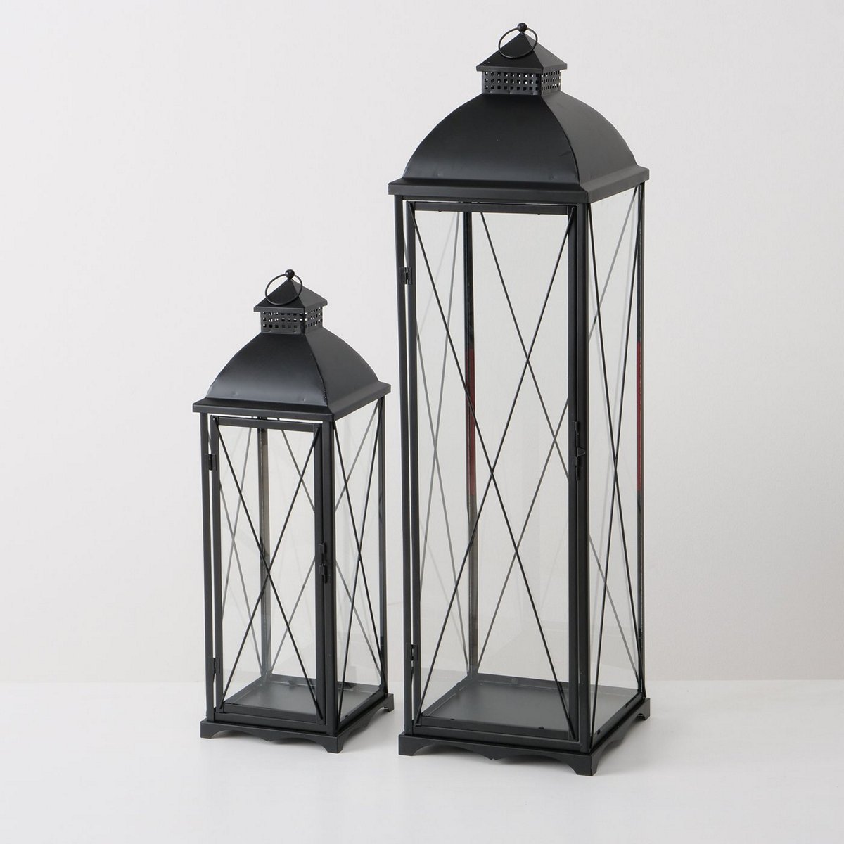 Lantern Florida, 2 p., Set 2, Hexagon, Indoor, H 72-110 cm, W 23-30,5 cm mixed materials black