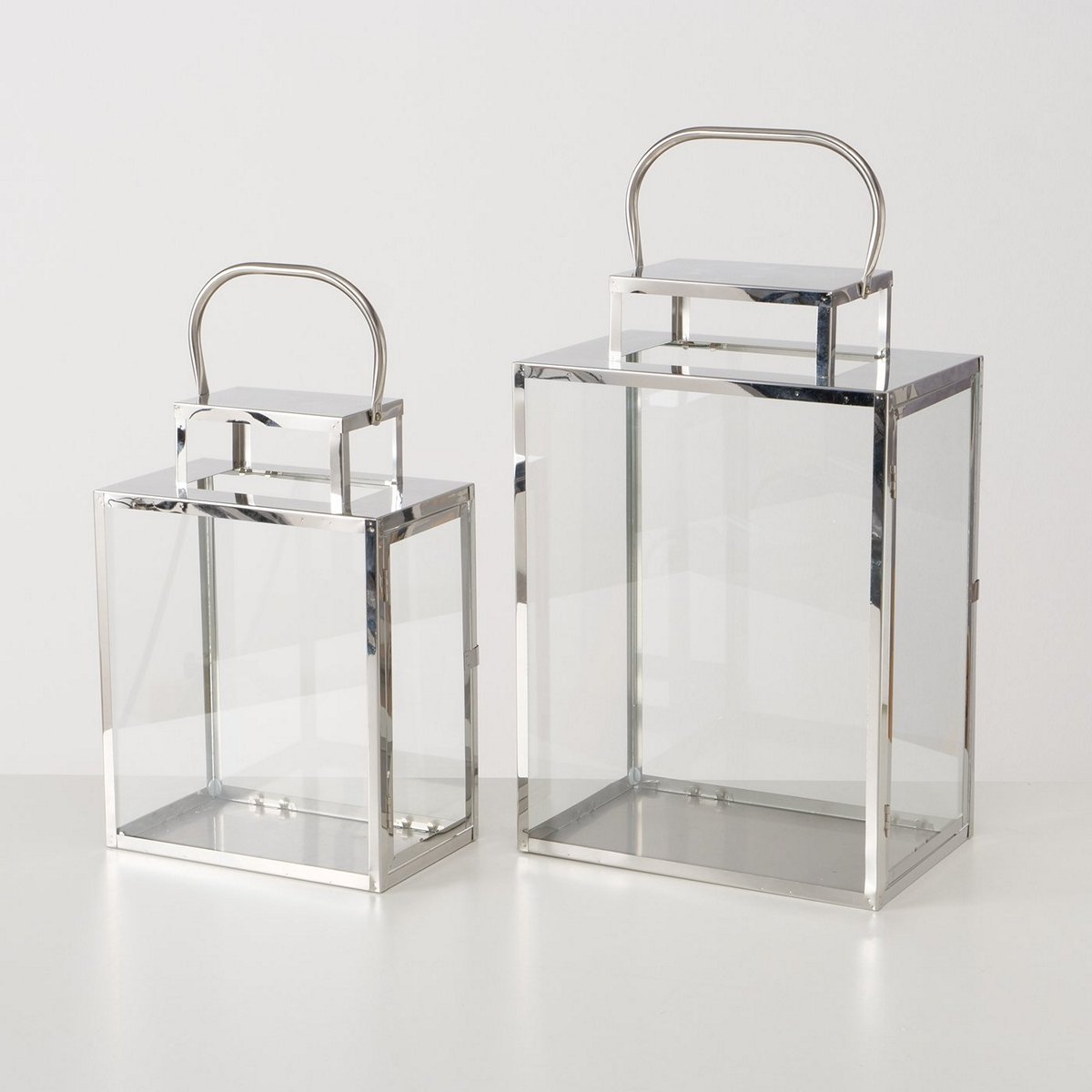 Lantern Jalena, 2 p., Set 2, Rectangle, Indoor, H 35-45 cm, W 15-20 cm stainless steel silver