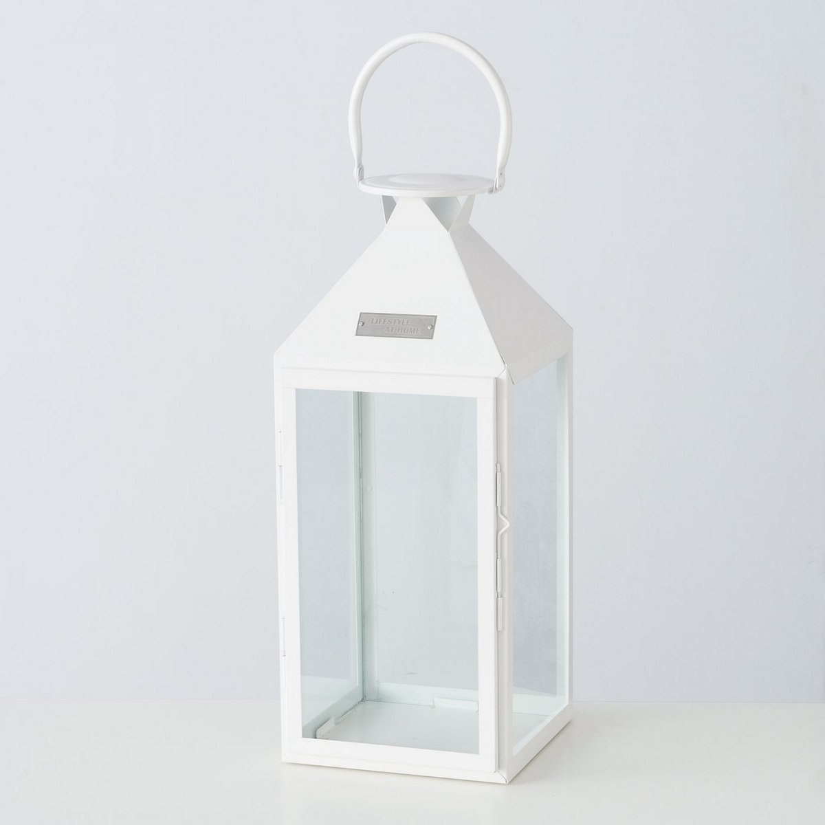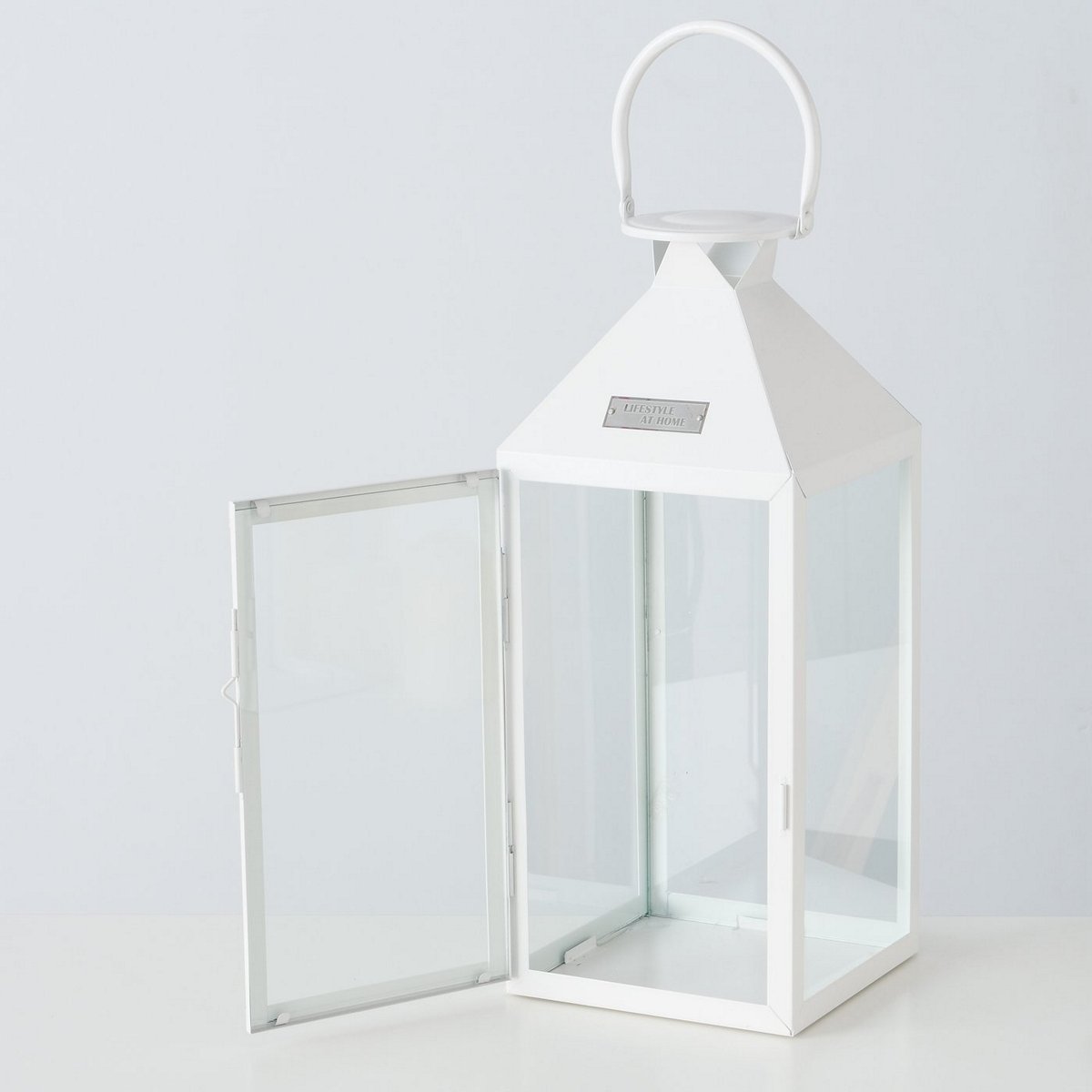 Lantern Jason, 2 p., Set 2, Square, Indoor, H 33-45 cm, W 11-18 cm mixed materials white