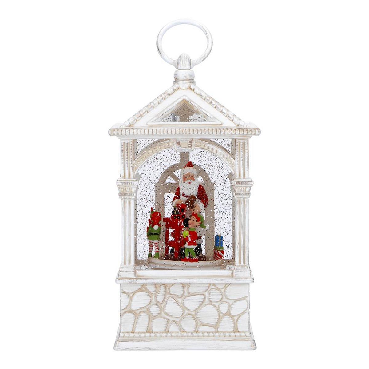 Lantern Santa with elf water spinning B/O-12x12x27cm-LED-multicolor