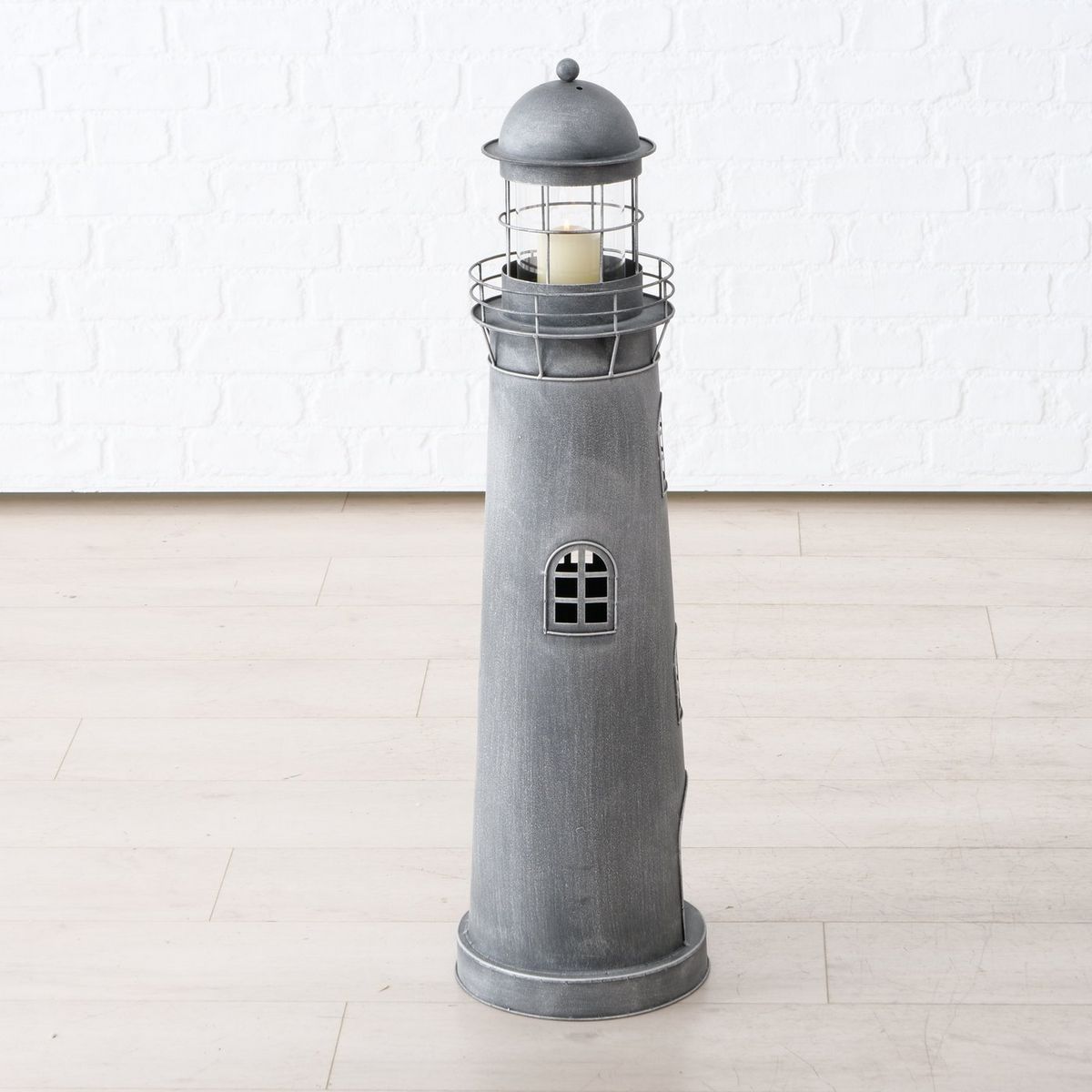 Lantern Sylt, 2 p., Set 2, Lighthouse, Indoor, H 90,00-117,00 cm, Iron, Clear glass