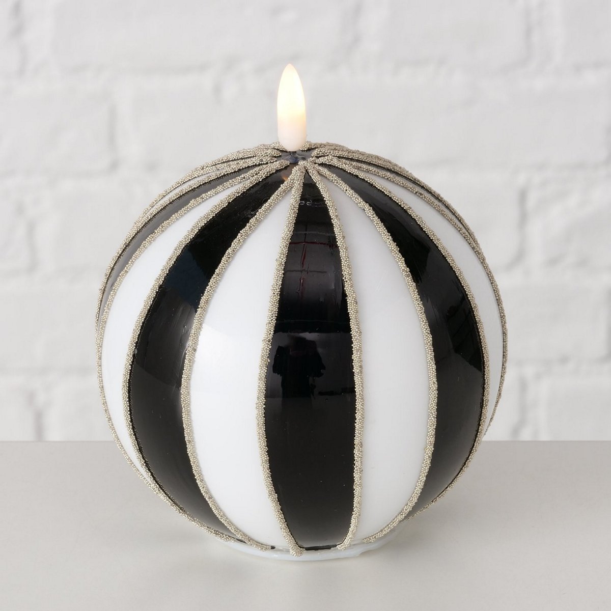 LED candle Janet, Ball, H 16 cm, D 12 cm, Timer mixed materials colour-mix