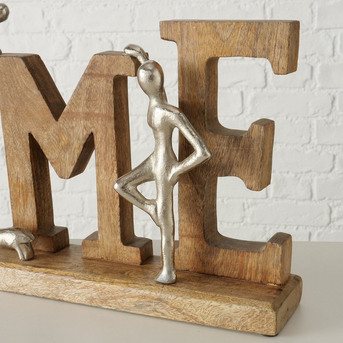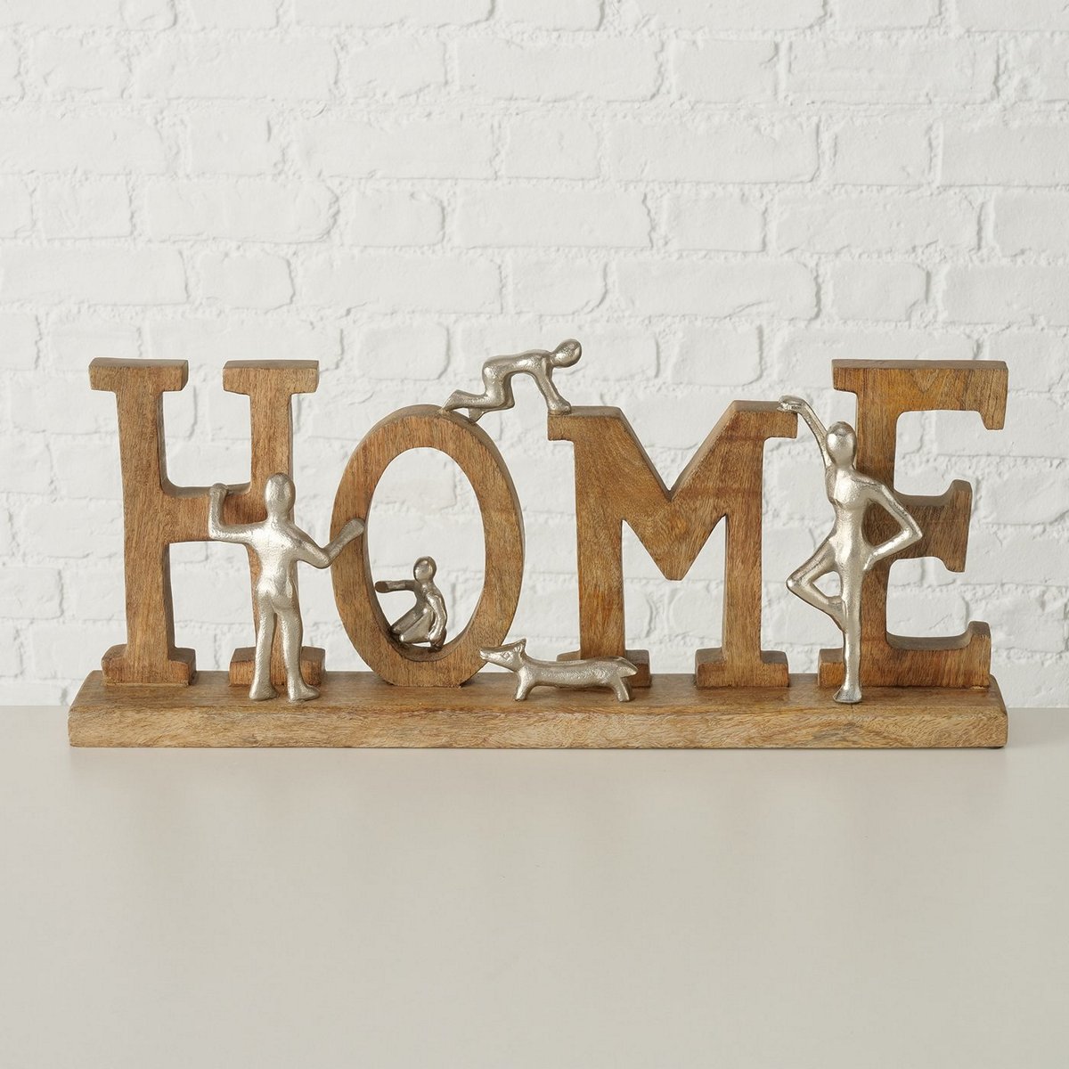 Lettering Home, Rectangle, W 8,00 cm, H 26,00 cm, Mango (Mangifera indica), Alu nickle mixed materials natural