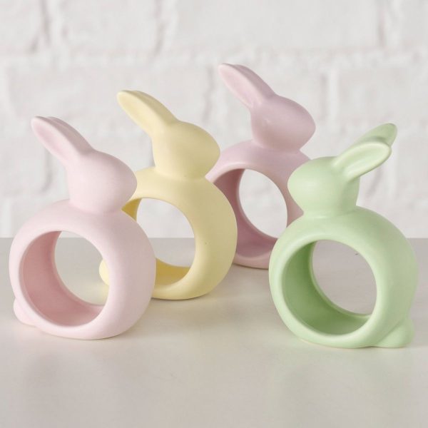 Napkin ring Mercy, 4 p., Stoneware, Single-colour, Light green, Light purple, Light rose, Light yellow, No