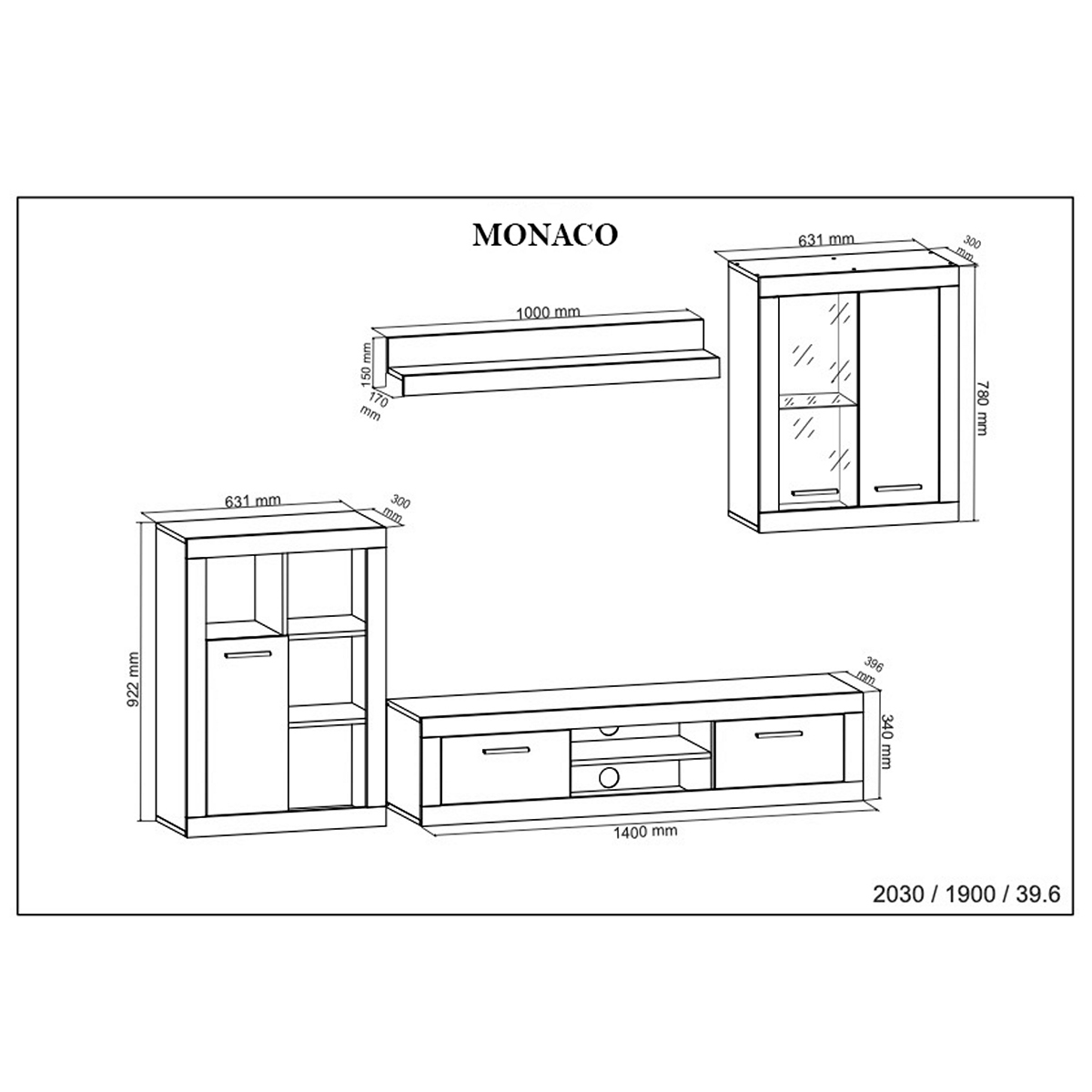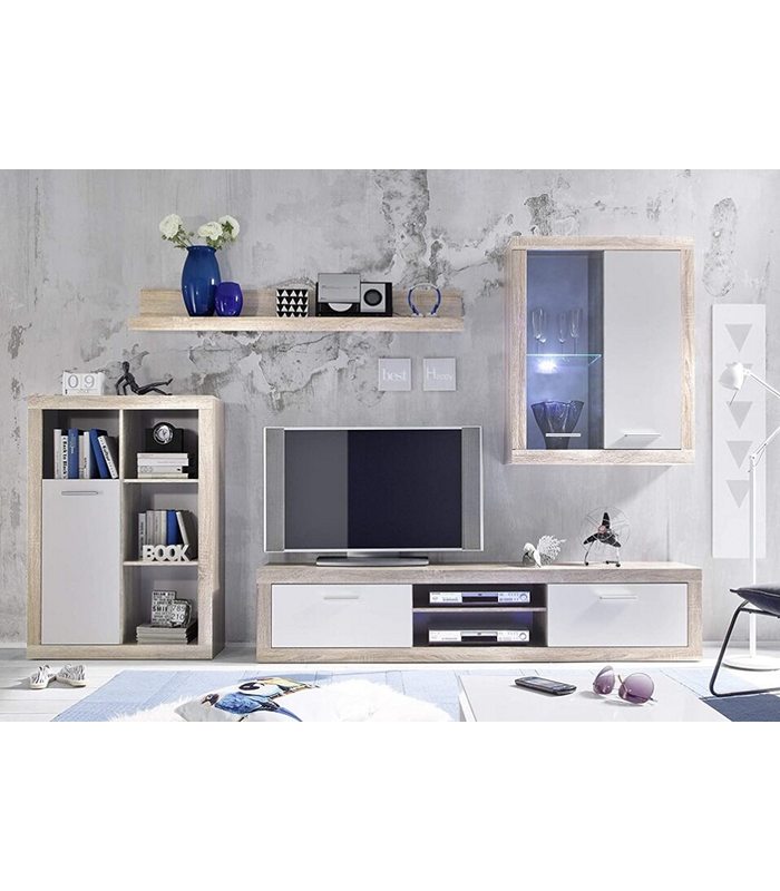 MONACO SET/4 sonoma oak/nymphaea alba w/illumination (TV STAND, SHELF, WALL CABINET, CABINET) 227/190/40cm melamine (assembling instructions included)