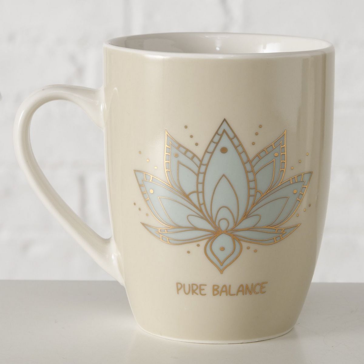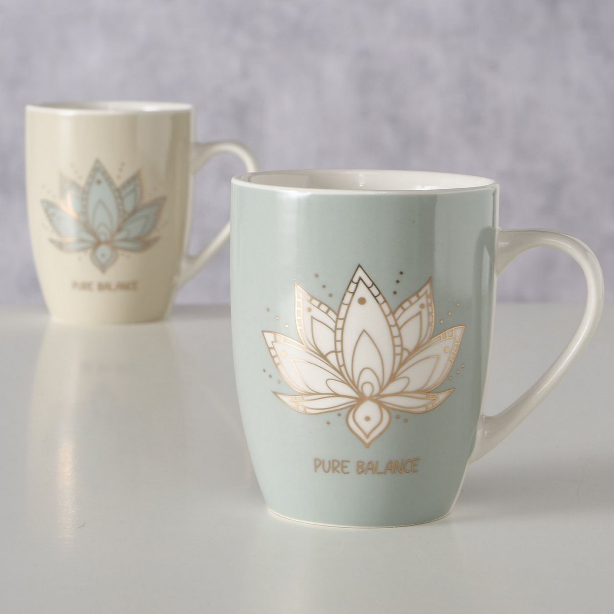 Mug Bali, 2 ass., 350 ml, Dishwasher proof, Floral, Motif, Multi-coloured, Saying/Text, Beige, Gold, Light turquoise
