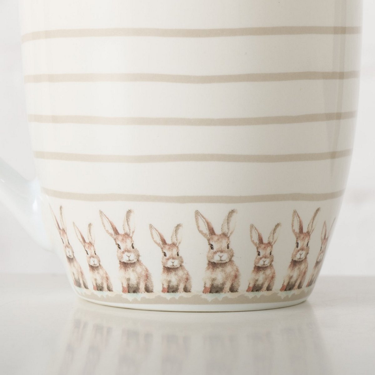Mug Hansi, 330 ml, Dishwasher proof, Striped, Multi-coloured, Motif, All-round printing, Beige, Cream white porcelain co
