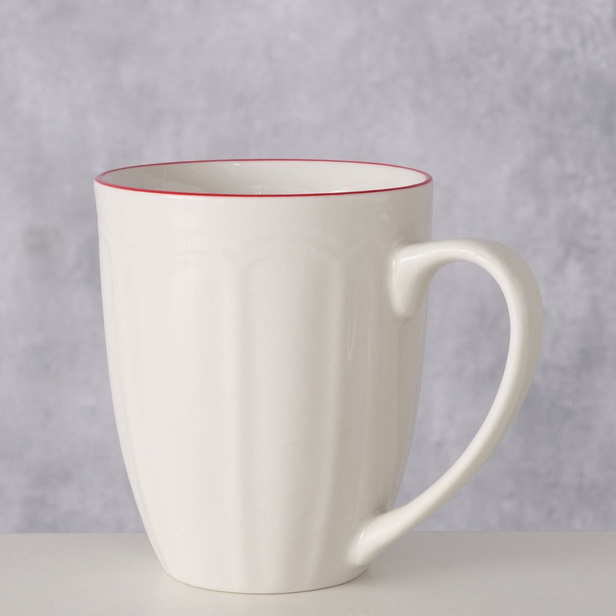 Mug Hedda, 330 ml, Dishwasher proof, Coloured edge, Red, White porcelain colour-mix