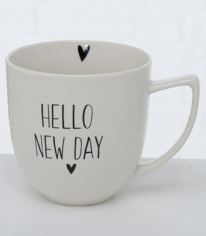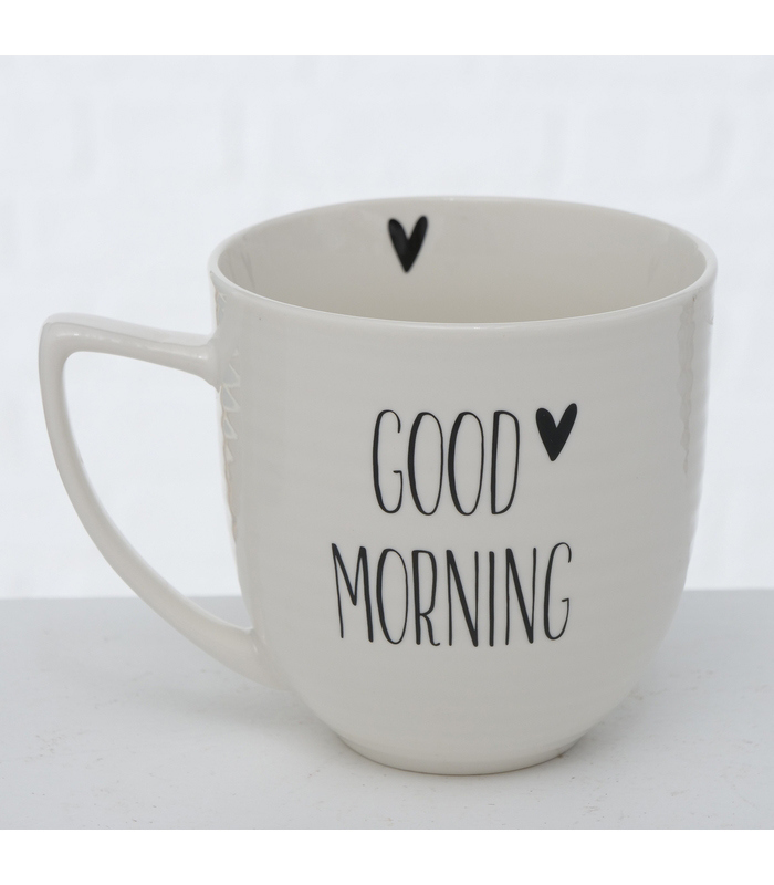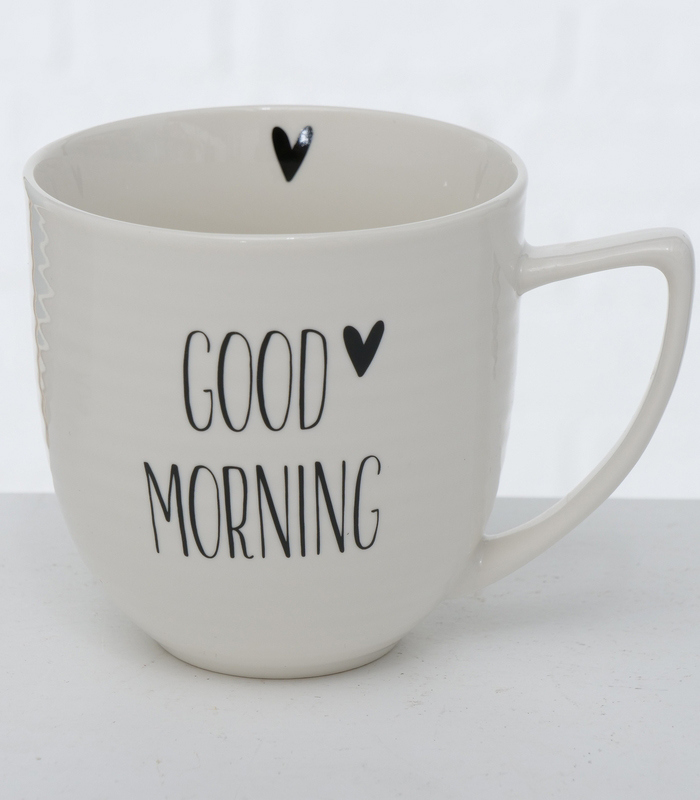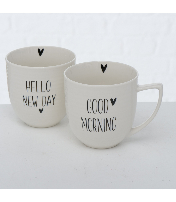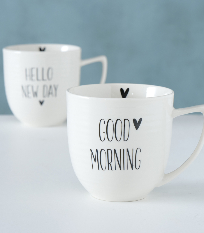 Mug Morning, 2 ass., 330 ml, Dishwasher safe, Saying/Text, Black, White New Bone colour-mix