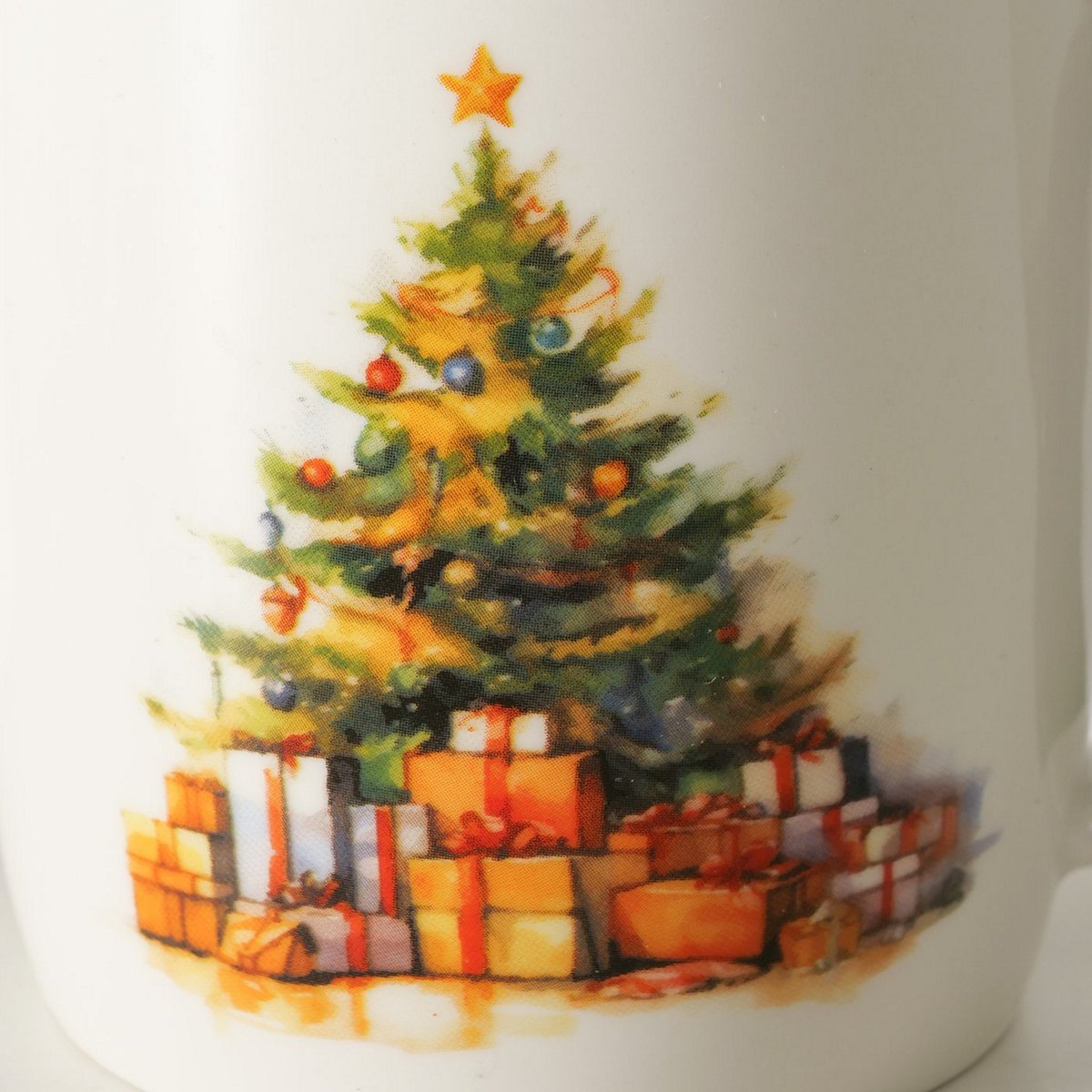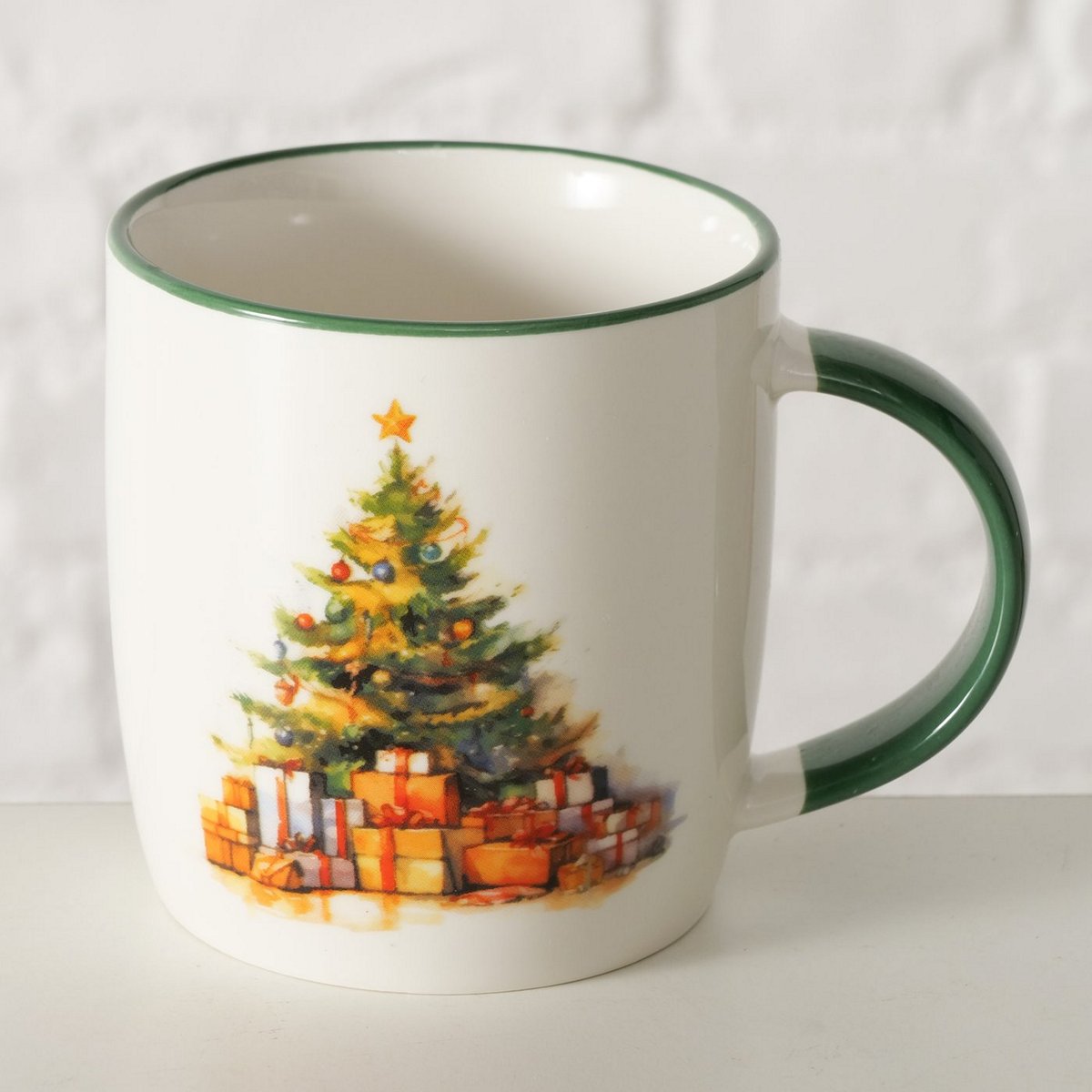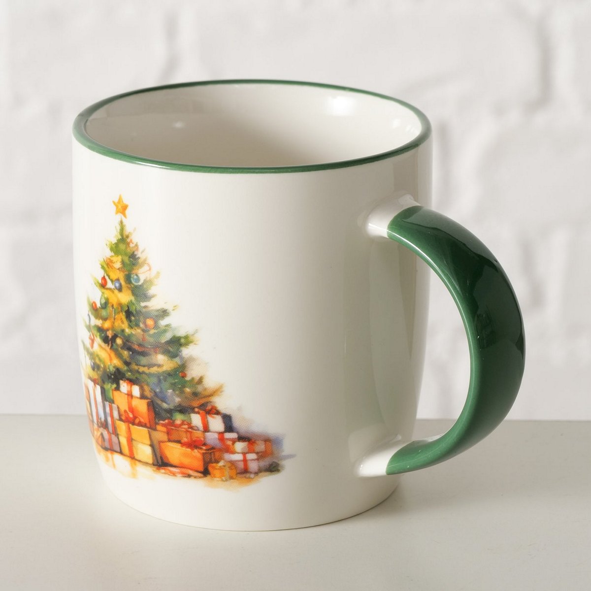 HomeSHOPCHRISTMAS COLLECTIONChristmas table Mug Navis, 340 ml, Dishwasher proof, Coloured edge, Multi-coloured, Motif, Brown, Dark green, White New Bone colour-mix